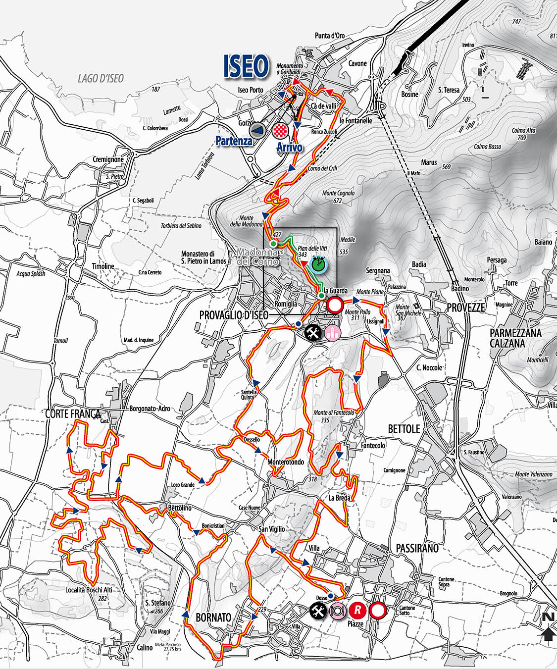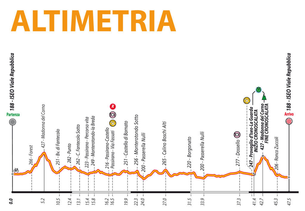 Il giudice ultimo della corsa resta la scalata alla Madonna del Corno nella sua tradizionale formula cronometrata e dal versante di Provaglio d’Iseo – La Guarda. Il chilometraggio complessivo sarà di 47,5 km.