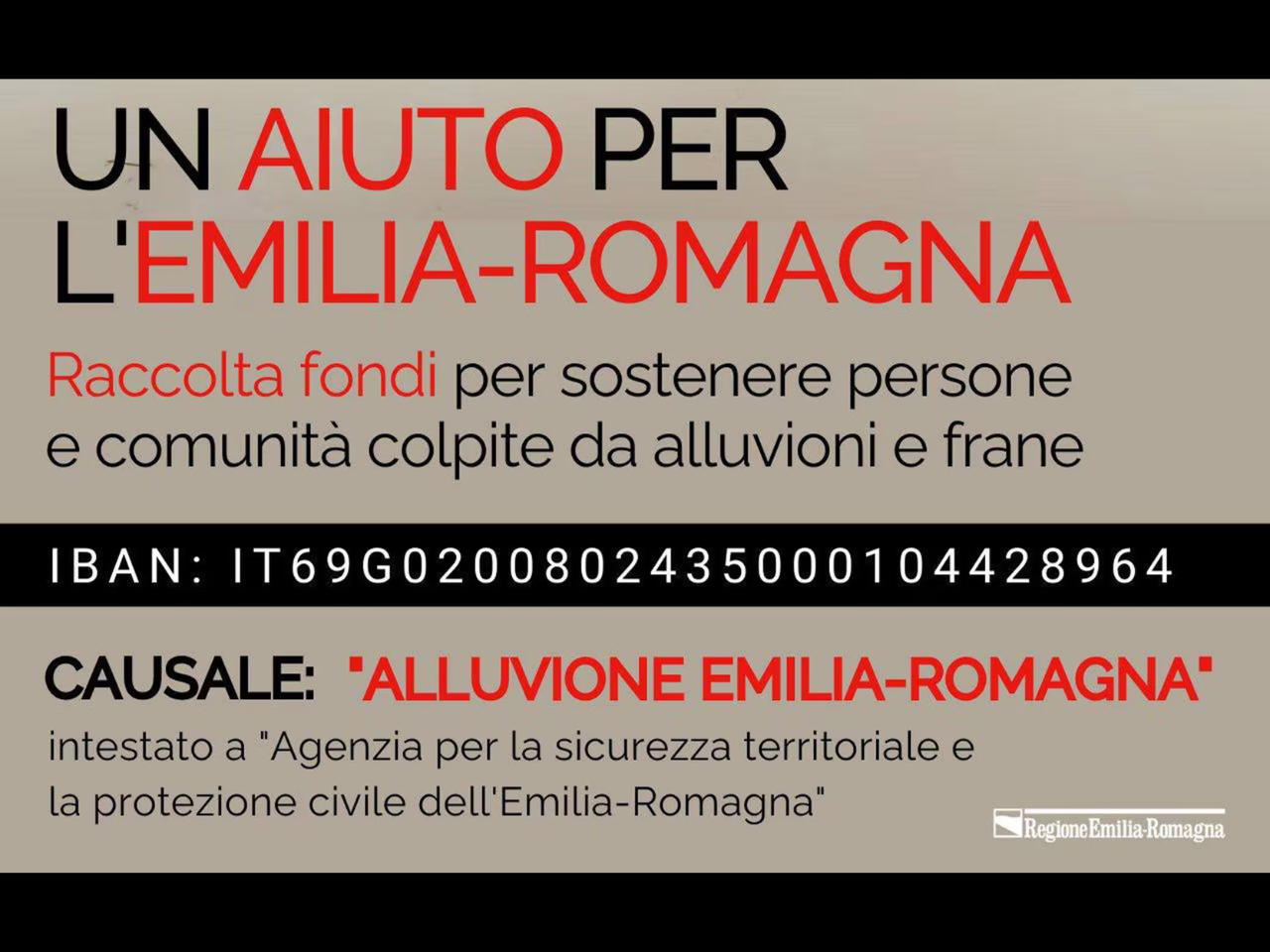 “Un aiuto per l’Emilia-Romagna”: è la raccolta fondi, lanciata dalla Regione Emilia-Romagna per sostenere le comunità colpite e dare risposta alle tantissime persone che hanno chiesto di poter essere d’aiuto, anche versando un contributo.