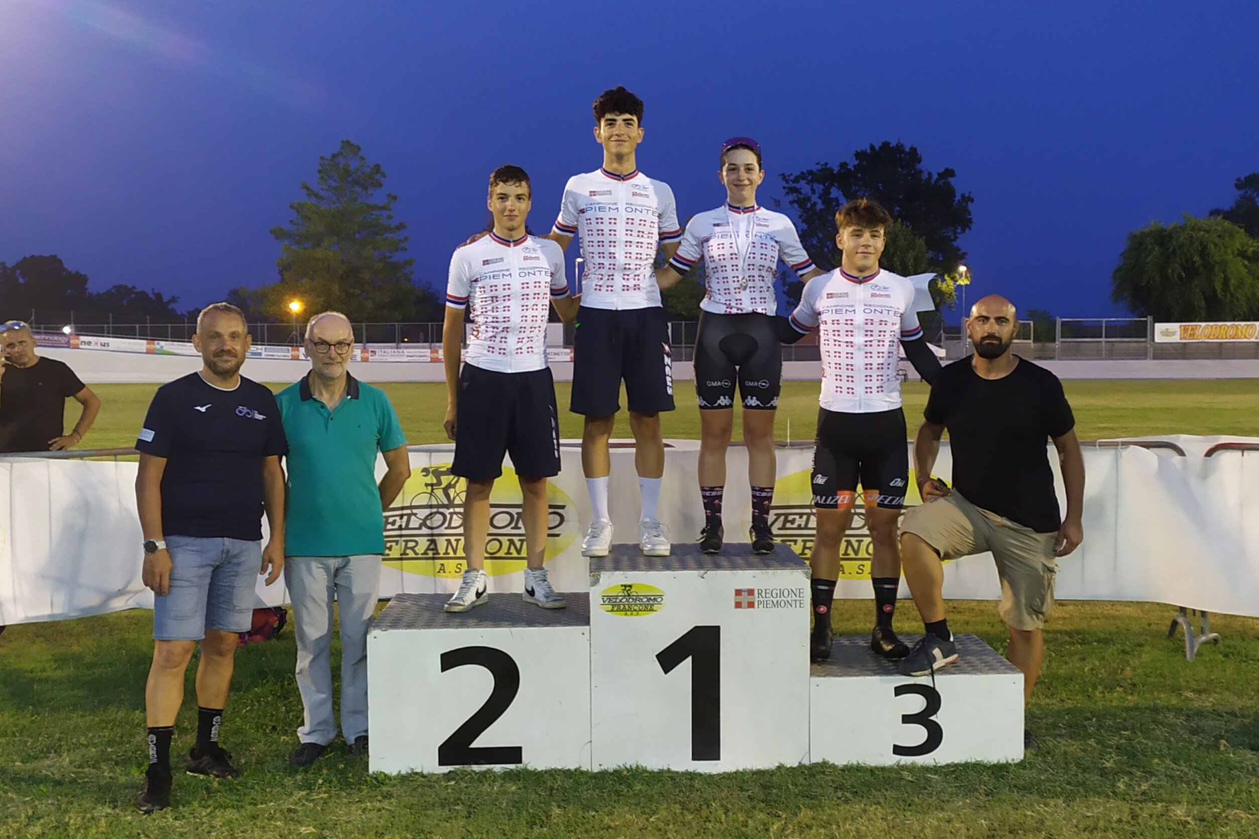 SAN FRANCESCO AL CAMPO (TO) – Si è conclusa iera sera al Velodromo Francone di San Francesco al Campo la due giorni dedicata alle categorie giovanili con le gare valide per l’assegnazione dei titoli regionali del Piemonte e della Valle d’Aosta e delle maglie provinciali. Dopo il Trofeo MV Costruzioni di mercoledì, che aveva visto protagonista una brillate Camilla Bezzone nel Keirin e nell’Inseguimento individuale, ieri si è disputato il Trofeo HTC Franke, riservato ad Allievi ed Esordienti.