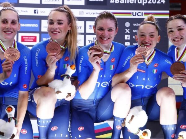 CALI’ (COL) – Si apre con due medaglie ‘rosa’ il Mondiale su pista riservato alla categoria juniores, in programma in Colombia fino a domenica 27 agosto: a salire sul podio per l’Italia sono state la piemontese Anita Baima, medaglia d’argento nello scratch, e il trio composto da Carola Ratti, Beatrice Bertolini e Asia Sgaravato, medaglia di bronzo nel Team Sprint femminile (nella foto di Federciclismo).