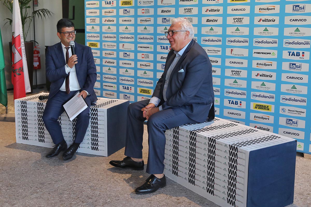 A fare gli onori di casa Emanuele Rabotti, Amministratore dell’azienda Monte Rossa e Varinia Andreoli, Assessore alla valorizzazione del territorio del Comune di Cazzago San Martino. Tra le altre autorità intervenute alla presentazione erano presenti: Lara Magoni, Sottosegretario ai Giovani e allo Sport di Regione Lombardia, Alberto Beragna, Assessore allo sport della Provincia di Brescia, Pierangelo Marini, Assessore allo Sport del Comune di Iseo, Nino Nulli, in rappresentanza del Gruppo Nulli main sponsor dell’evento e Giancarlo Masini, Consigliere nazionale della Federciclismo.