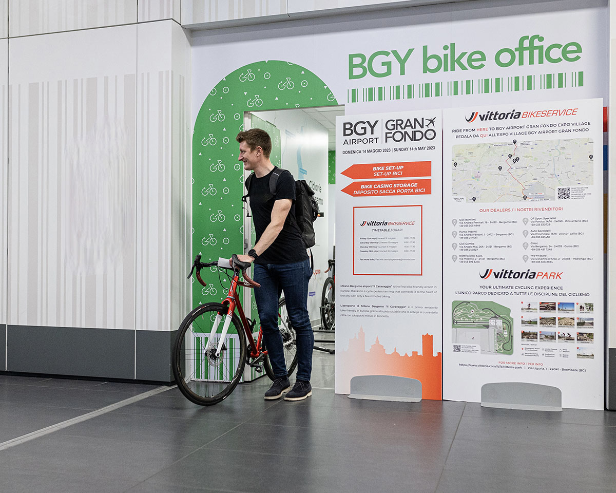Un servizio molto utile ed esclusivo reso possibile dalla collaborazione pluriennale tra Vittoria e l’Aeroporto di Milano Bergamo (BGY), il primo aeroporto bike-friendly d’Europa. Il BGY Bike Office è un servizio sempre operativo e che grazie alla collaborazione esclusiva con la BGY Airport Granfondo diventa un’opportunità speciale per tanti appassionati che voleranno a Bergamo, provenienti da diverse città d’Italia e del mondo, per partecipare al prestigioso evento ciclistico amatoriale, che quest’anno si svolgerà domenica 5 maggio 2024, sotto l’egida della Federazione Ciclistica Italiana.