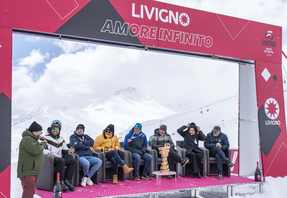 Per presentare la tappa, il Mottolino, venue olimpica dei Giochi del 2026, è stato quindi vestito “a festa”, con l’istallazione di una tribuna, che ha abbracciato tutta l’area del traguardo. Occasione unica di ammirare un luogo iconico per i freestyler di tutto il Mondo, ancora completamente imbiancato, iniziando però anche ad immaginare lo spettacolo che ci attende da qui a un mese, quando la neve farà spazio al durissimo tratto finale di strada che condurrà i campioni del pedale sul tetto di Livigno. Non soltanto un colpo d’occhio da mozzare il fiato, ma anche l’incontro tra due delle anime sportive della località, che si riflette tanto nei valori di sacrificio e spirito di squadra del ciclismo quanto in quelli di libertà e fratellanza delle discipline del freestyle.