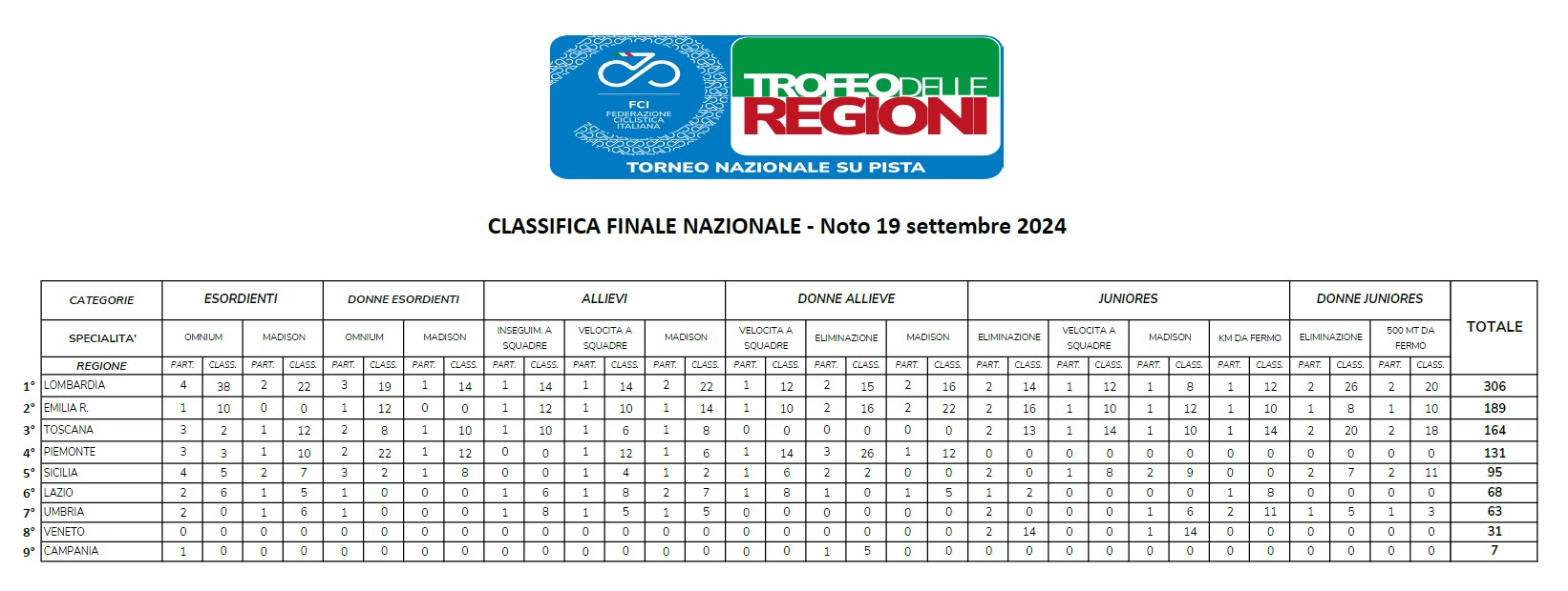 Giovedì 19 settembre la prova finale in Sicilia ha concluso un percorso per le Regioni qualificate dopo le prove di qualificazione che si erano svolte ai velodromi di San Francesco al Campo, Forano e Firenze.