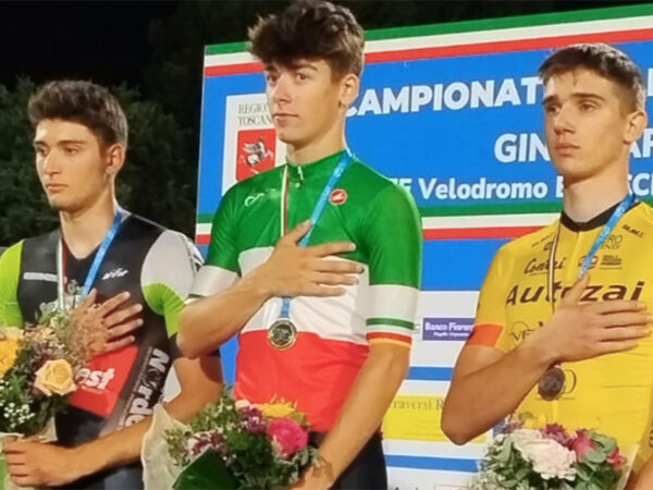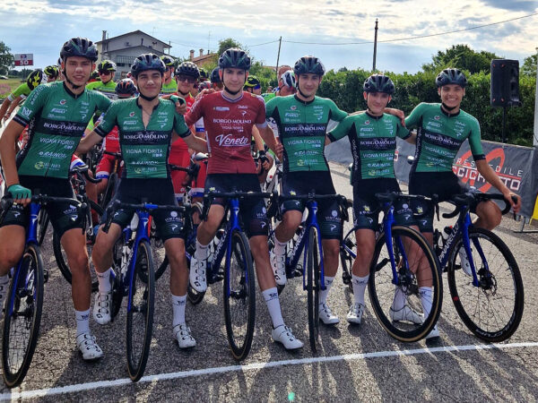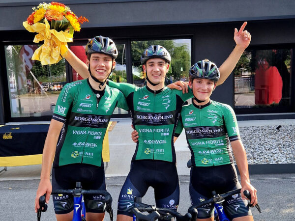 Alle spalle del ciclista veneto si piazzano Federico Saccani (GS Aspiratori Otelli Alche) e il compagno di squadra del vincitore Martin Gris.