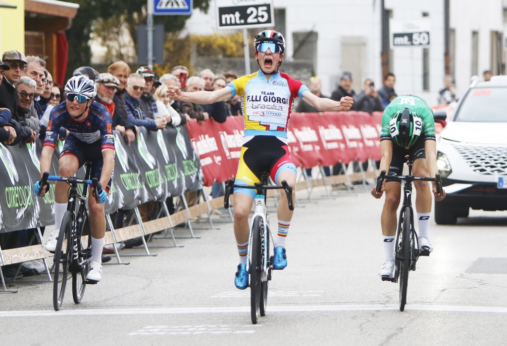 Questa è ancora una volta una vittoria di spessore, perché il parterre degli atleti al via era di alto livello. La gara si è decisa tutta nel finale dei 107 Km percorsi dai corridori alla media di 43,198 Km/h. Sulla salita finale si avvantaggiano Dalle Crode, Frigo e il trevigiano Giacomo Rosato. Dietro gli atleti si frazionano e la vittoria diventa una questione a tre. Sulla finish line di Silvelle di Cordigliano (TV) Rosato fa valere il suo spunto veloce e conquista un grande successo (foto Rodella).