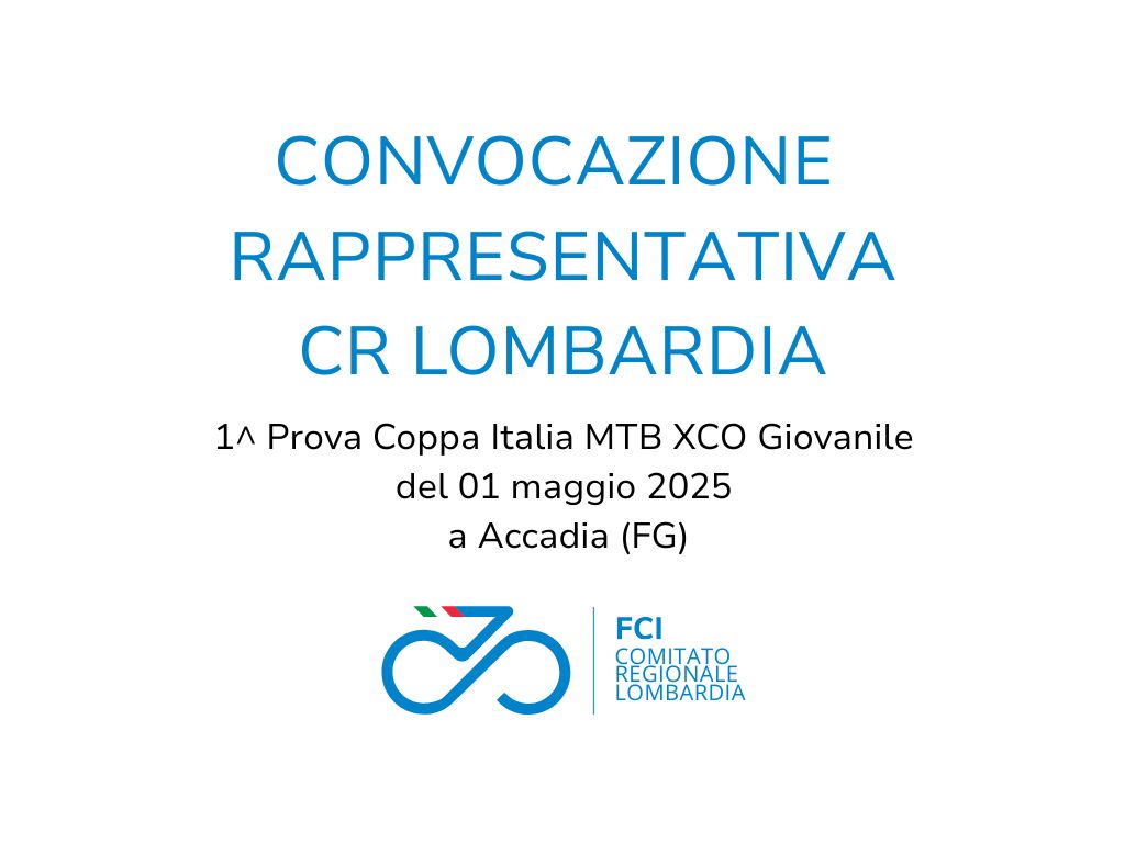 Il Comitato Regionale Lombardia della Federazione Ciclistica Italiana (FCI) ha annunciato la selezione degli atleti che rappresenteranno la regione nella 1^ Prova Coppa Italia MTB XCO Giovanile, gara per in programma l’1 maggio ad Accadia in provincia di Foggia.