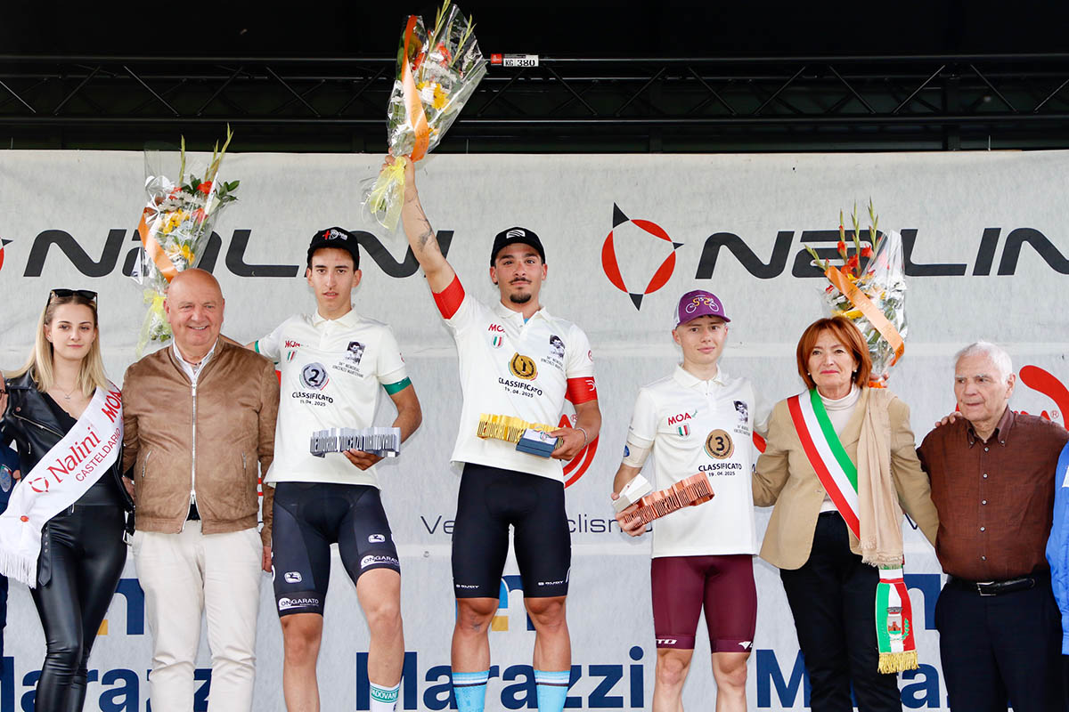 Il podio del Memorial Vincenzo Mantovani 2025 (foto Photobicicailotto)