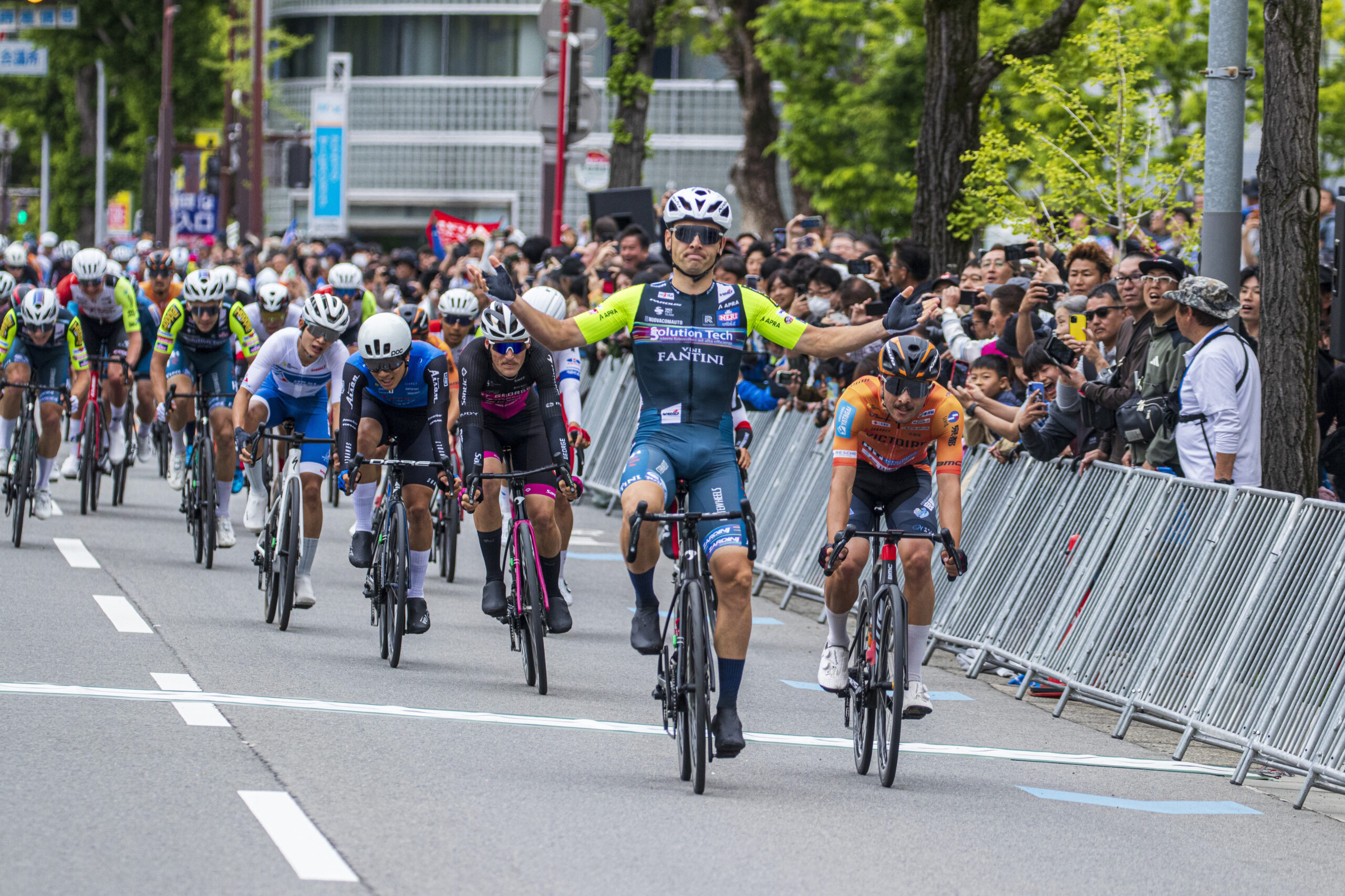 Inizio col botto per il Team Solution Tech–Vini Fantini, che festeggia il successo di Dušan Rajović al Criterium Wakayama.