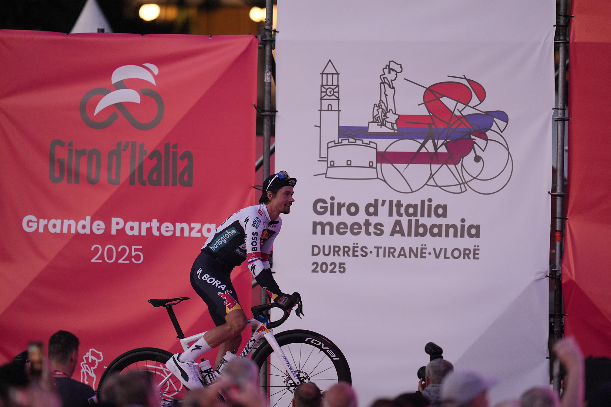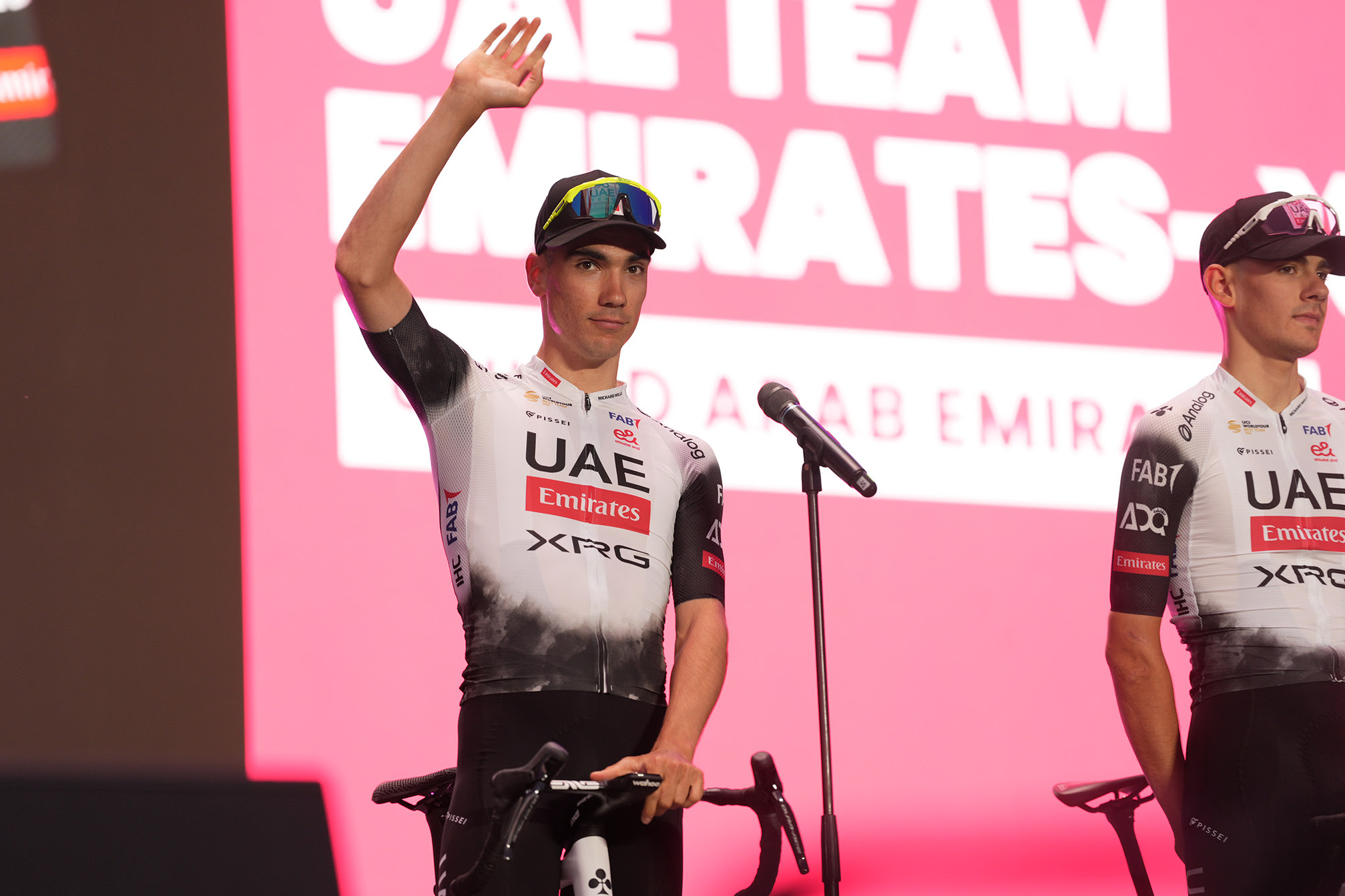 AYUSO PESQUERA Juan during the teams presentation ahead of the Giro d’Italia cycling race in Tirana. The race starts on Friday, May 9, with the first stage over 160 km, from Durazzo (Durres) to Tirana (Tirane), Albania- Wednesday, May 7, 2025. Sport – cycling. (Photo by Massimo Paolone/LaPresse)