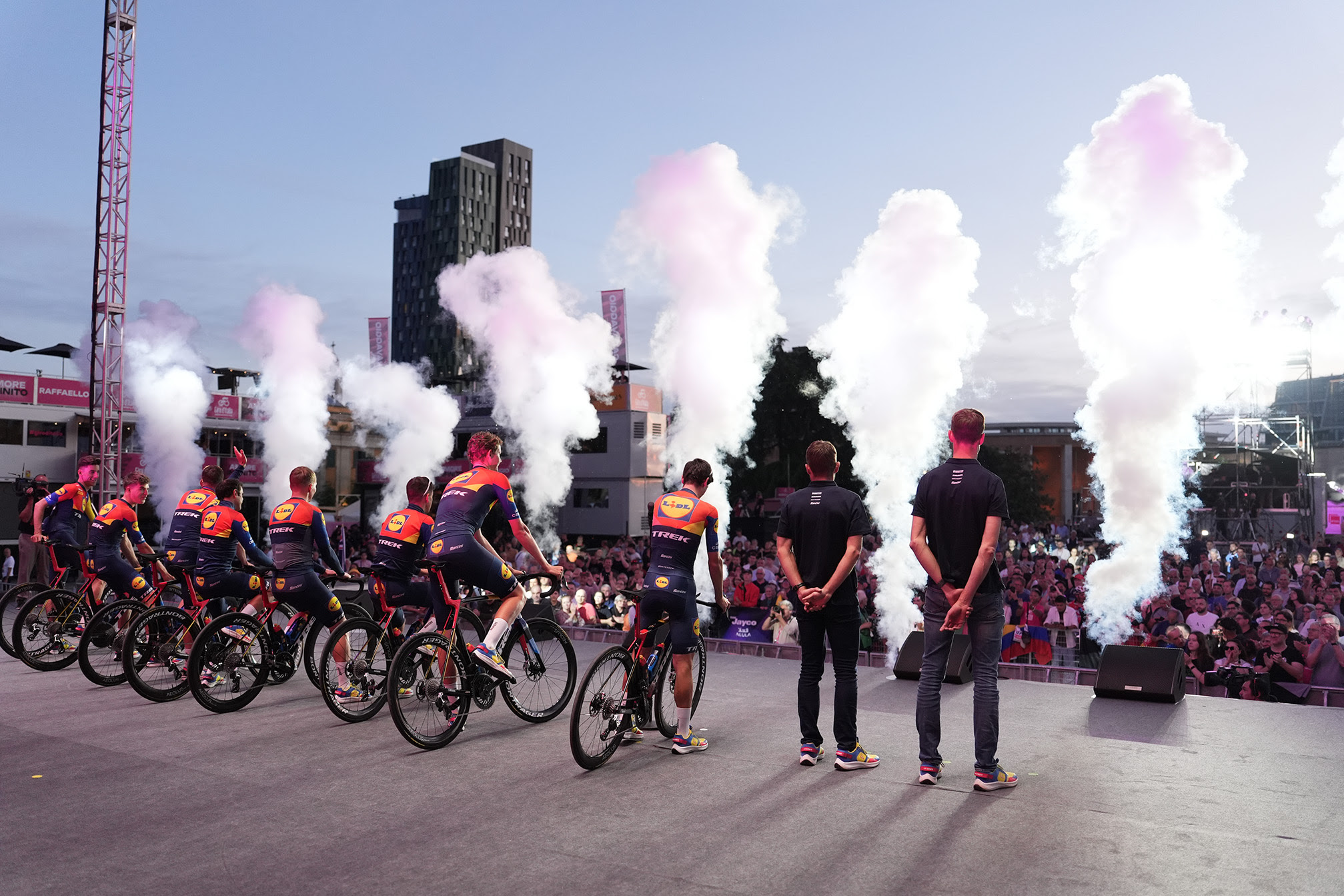 The teams presentation ahead of the Giro d’Italia cycling race in Tirana. The race starts on Friday, May 9, with the first stage over 160 km, from Durazzo (Durres) to Tirana (Tirane), Albania- Wednesday, May 7, 2025. Sport – cycling. (Photo by Fabio Ferrari/LaPresse)