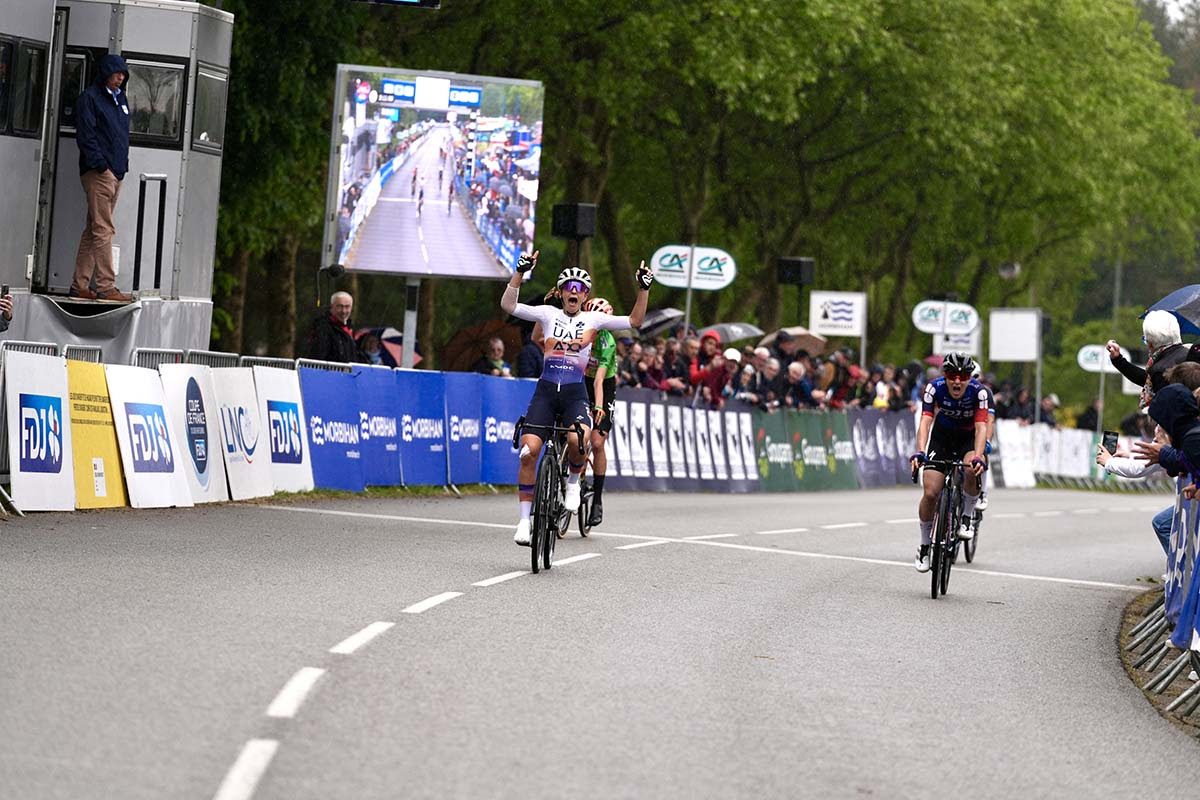 Spettacolare vittoria di Eleonora Gasparrini di UAE Team ADQ al Grand Prix du Morbihan Femmes, corso oggi sulla distanza di 83.9 km con partenza e arrivo a Plumelec. Con una gestione di gara perfetta nel finale, l’italiana è stata letale sul traguardo in leggera salita e ha superato l’esperta svizzera Elise Chabbey (FDJ – Suez).
