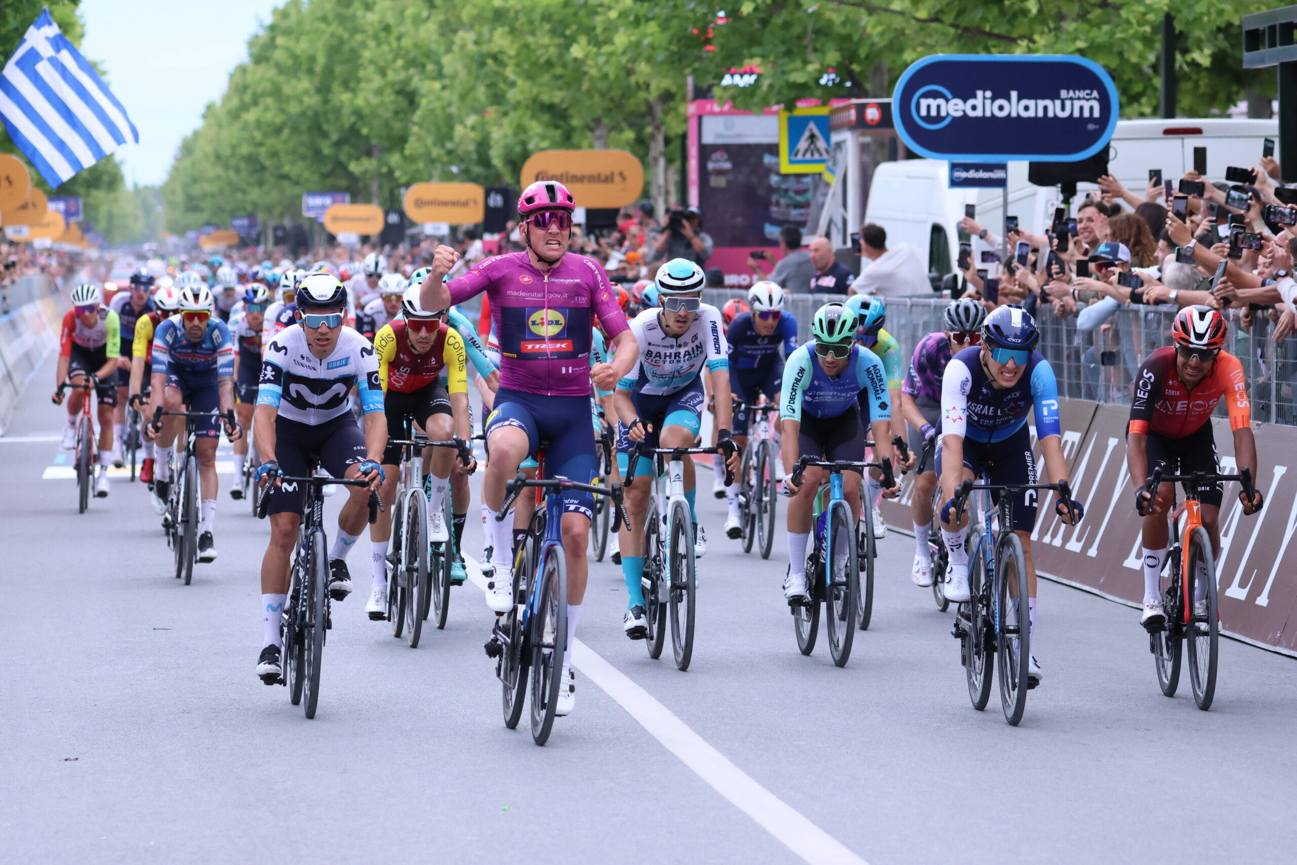 Una volata potente e impeccabile ha consegnato a Mads Pedersen (Lidl – Trek) la vittoria nella tappa odierna del Giro. Il danese ha saputo imporsi su un gruppo compatto, regolando gli avversari con la forza e l’intelligenza tattica di chi ha ormai grande dimestichezza con i traguardi affollati.