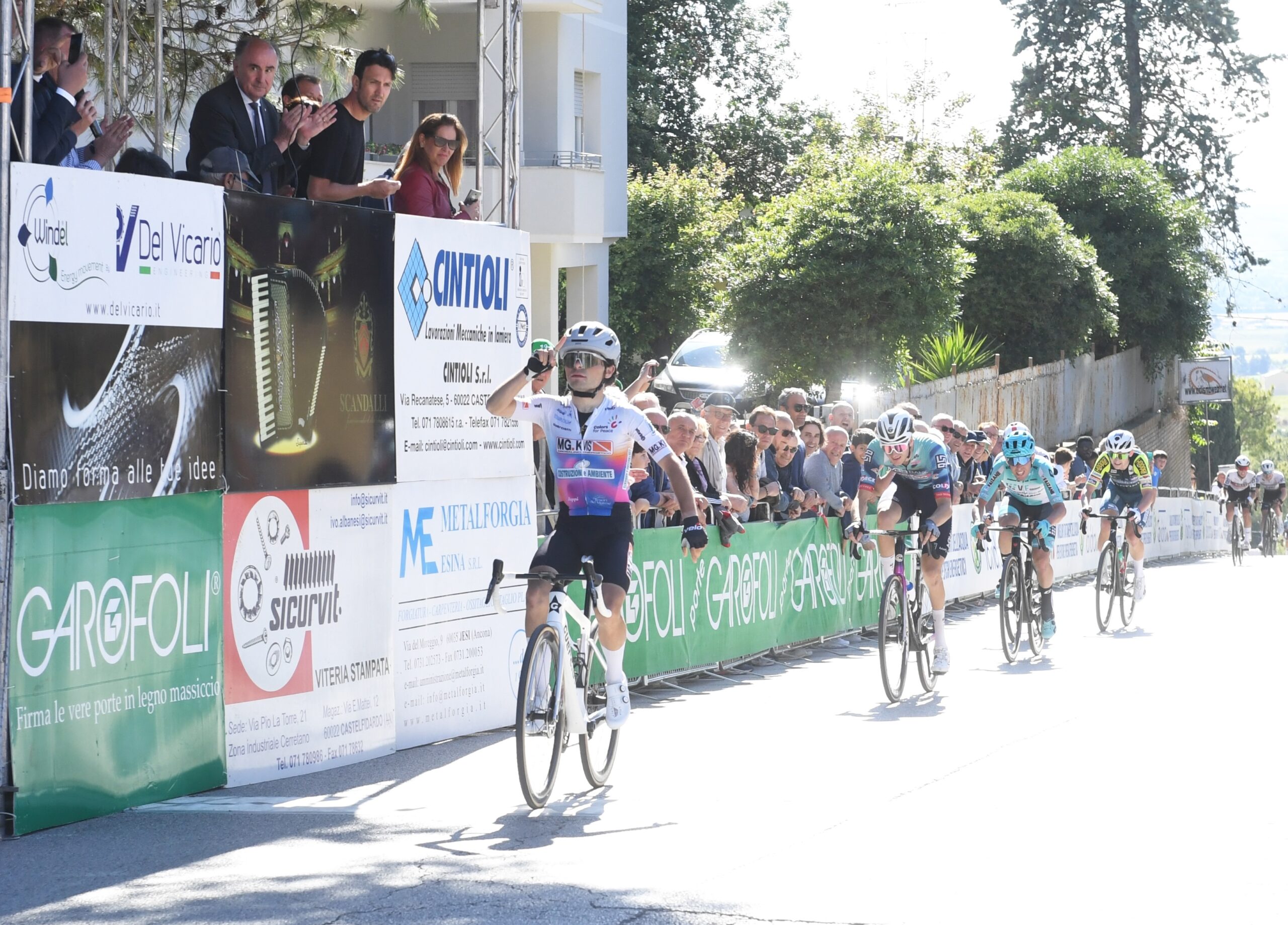CASTELFIDARDO – Francesco Parravano mette tutti a sedere nella prima giornata della Due Giorni Marchigiana a Castelfidardo. Il ciociario della MG Kvis Costruzioni e Ambiente Colors for Peace trionfa al Gran Premio Santa Rita superando allo sprint un drappello di otto corridori con i quali era andato all’attacco nelle fasi cruciali della corsa internazionale. Matteo Ambrosini ha chiuso al 2° posto, mentre terzo è Alex Tolio.