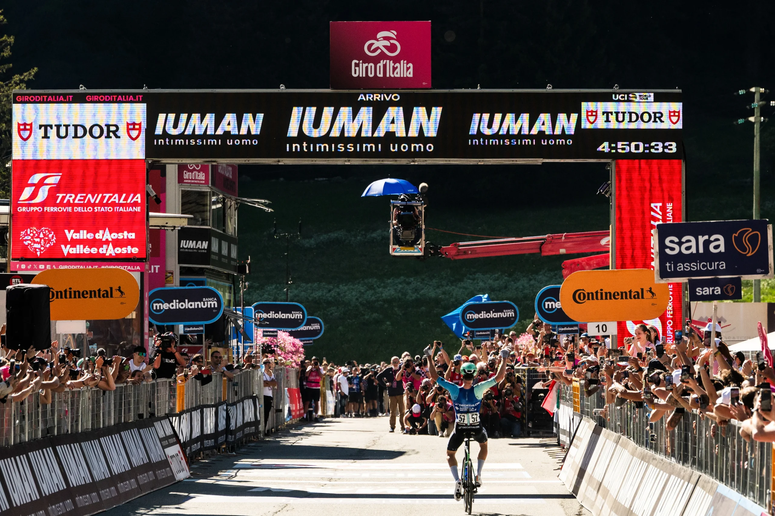 L’ecuadoriano ha accelerato sull’ascesa di Antagnod, ma la Maglia Rosa ha risposto con freddezza, senza mai concedere un metro. I due hanno chiuso a 58″ da Prodhomme, con Del Toro che, grazie al secondo posto e agli abbuoni, porta a 43″ il margine sul vincitore del Giro 2019. Il gruppetto con gli altri uomini di classifica ha tagliato il traguardo a 1’22”, con Damiano Caruso a precedere Brandon McNulty. Giulio Pellizzari, caduto negli ultimi metri, è stato regolarmente classificato con lo stesso tempo degli altri. Domani la resa dei conti: torna, dopo sette anni, il Colle delle Finestre, Cima Coppi del Giro 2025.