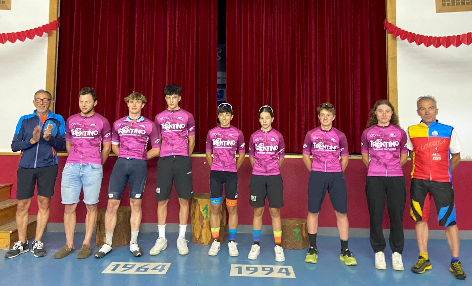 I campioni trentini Xcc: Enrico Marietti (Elite), Mark Kudiyev (Juniores), Nicole Azzetti (Junior Donne), Matteo Zanardi (Allievi), Giulia Lorandini (Allieve), Tobia Vanzetta (Esordienti), Adele Cobelli (Esordienti Donne).