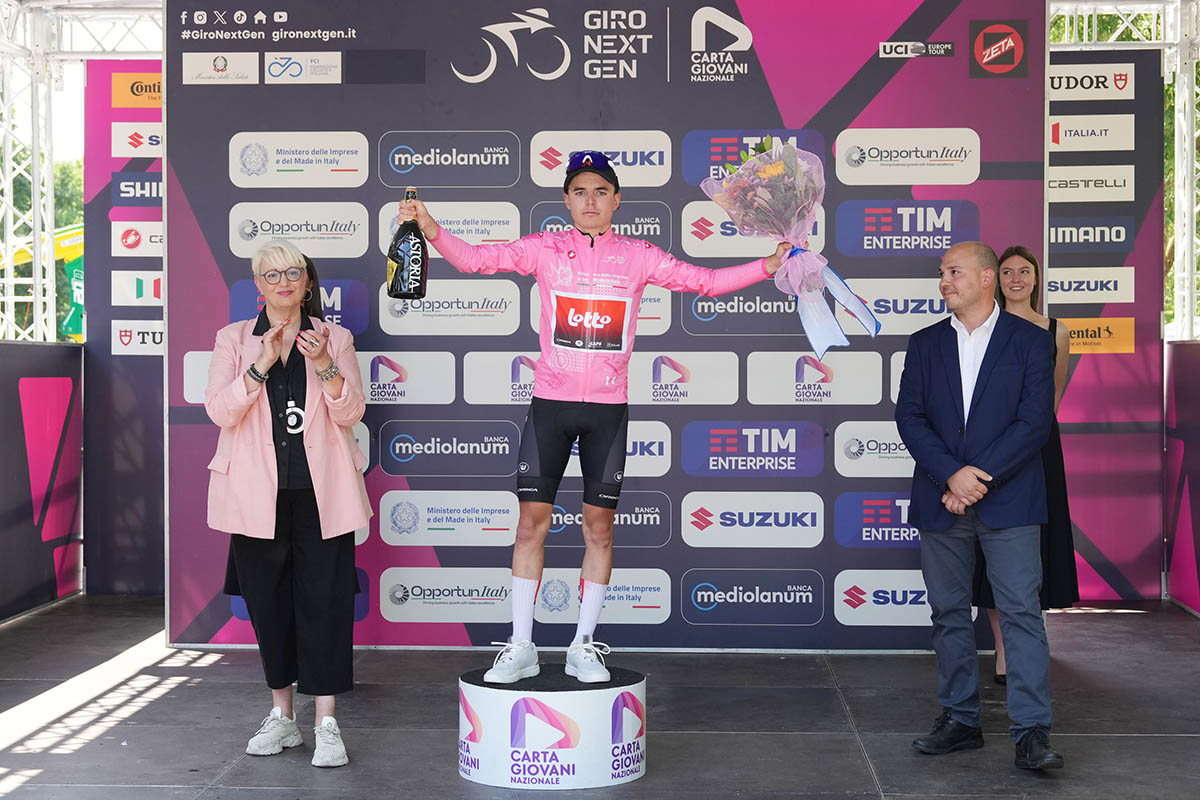 - Maglia Rosa, leader della Classifica Generale, sponsorizzata da Mimit – Ministero delle Imprese e del Made in Italy – Jarno Widar (Lotto Development Team)