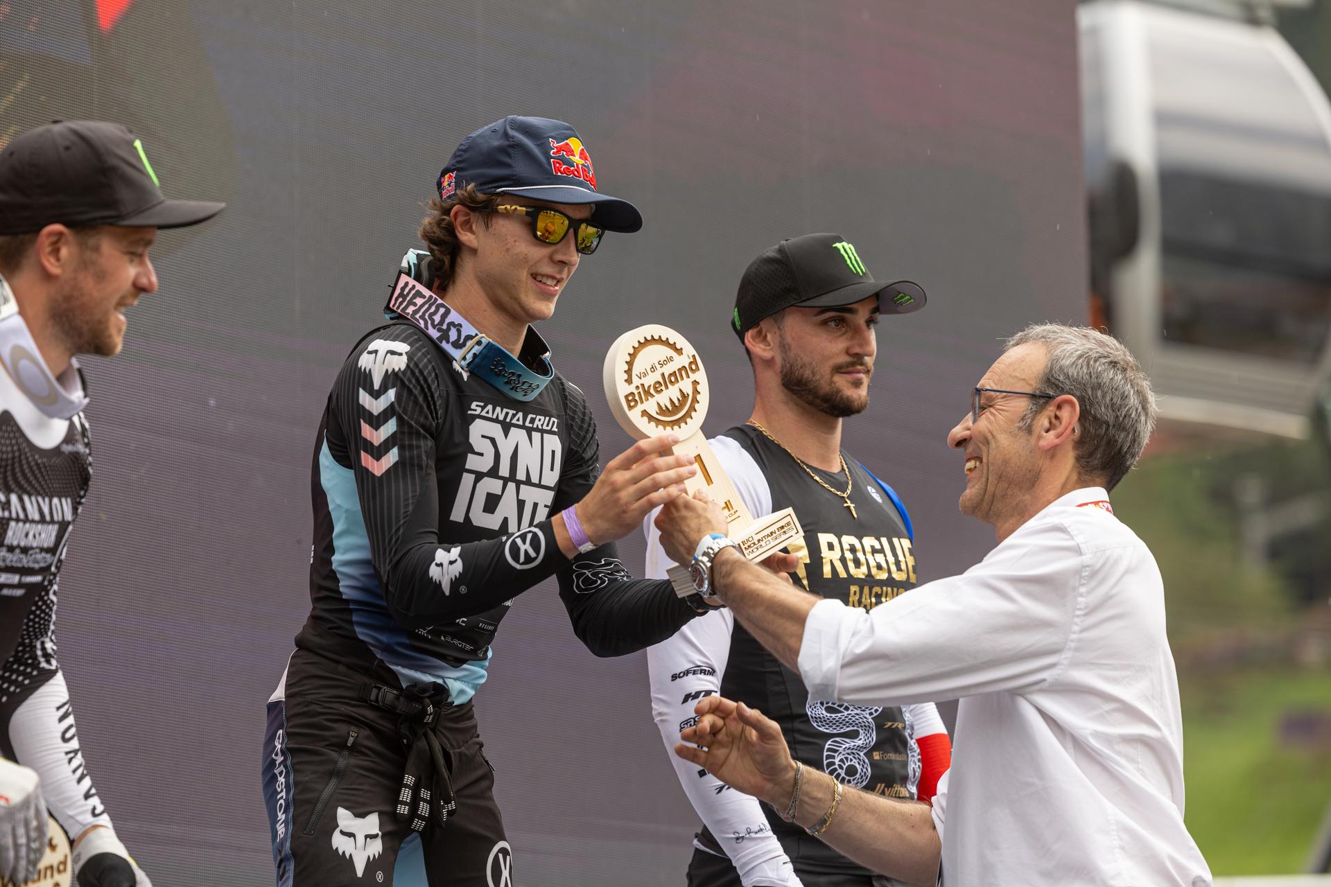 In una giornata in cui il terreno scivoloso, oltre alla difficoltà della pista, rendeva difficile impostare una run senza sbavature, il portacolori del Team Santa Cruz Syndacate è riuscito a creare velocità in tutte le sezioni del tracciato, chiudendo la prova in 3:38.682. Alle sue spalle, la piazza d’onore è andata all’australiano Troy Brosnan (Canyon CLLCTV), distanziato di 2.422, terzo il francese Thibaut Daprela (Rogue Racing) a 3.361, l’unico ad avvicinarsi all’interpretazione di Goldstone, penalizzato però da un errore nella parte finale della Black Snake.