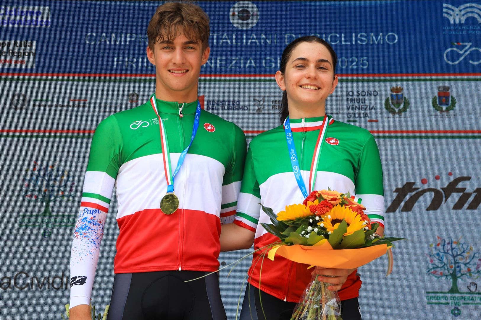 Prime due maglie tricolori assegnate ai Campionati Italiani cronometro organizzati da Cellina Bike con la collaborazione di Libertas Ceresetto.