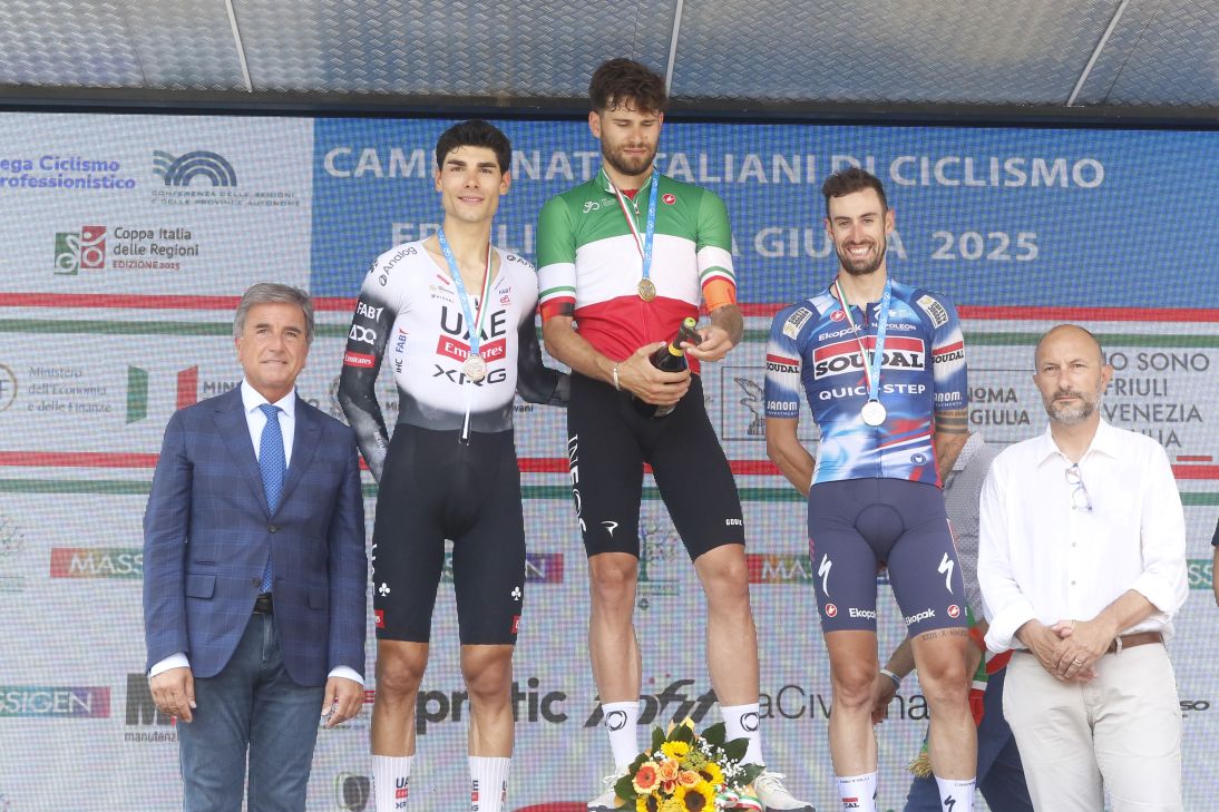 “Mi chiedi se mi aspettavo di vincere? Zero, proprio. Per niente – racconta un Davide Donati estremamente commosso con gli occhi lucidi per l’emozione – vengo da mesi complicati con problemi al ginocchio che mi hanno tenuto fermo per un mese. Mi allenavo cinque ore a settimana, ho fatto due settimane a Girona per cercare di risolvere, un’altra settimana e mezzo a Salisburgo. Di fatto, ho iniziato ad allenarmi davvero solo da due settimane. Sono venuto qui al Campionato Italiano senza aspettative perché a me la crono piace da morire. Ieri ho provato questa cronometro, perché il percorso mi piaceva tanto, mi ha dato delle belle vibes e ringrazio Sobrero che mi ha dato buoni consigli. Oggi  sono partito forte nella prima parte per tenere alta la velocità, perché c’erano diverse curve. Quindi mi sono stabilizzato sul ritmo che forse era un po’ alto, perché alla fine ero un po’ in crisi, ma comunque ho stretto i denti, perché sapevo che la lotta era di pochi secondi. Ho spinto a tutta fino alla fine, è andata bene. Dedico questo successo alla mia squadra, i miei genitori, a mio fratello, alla mia ragazza che mi è stata molto vicino in questo periodo e a tutte le persone che mi hanno sostenuto in ogni mio momento No. Chi mi è vicino lo sa e sarà orgoglioso di questo risultato.”