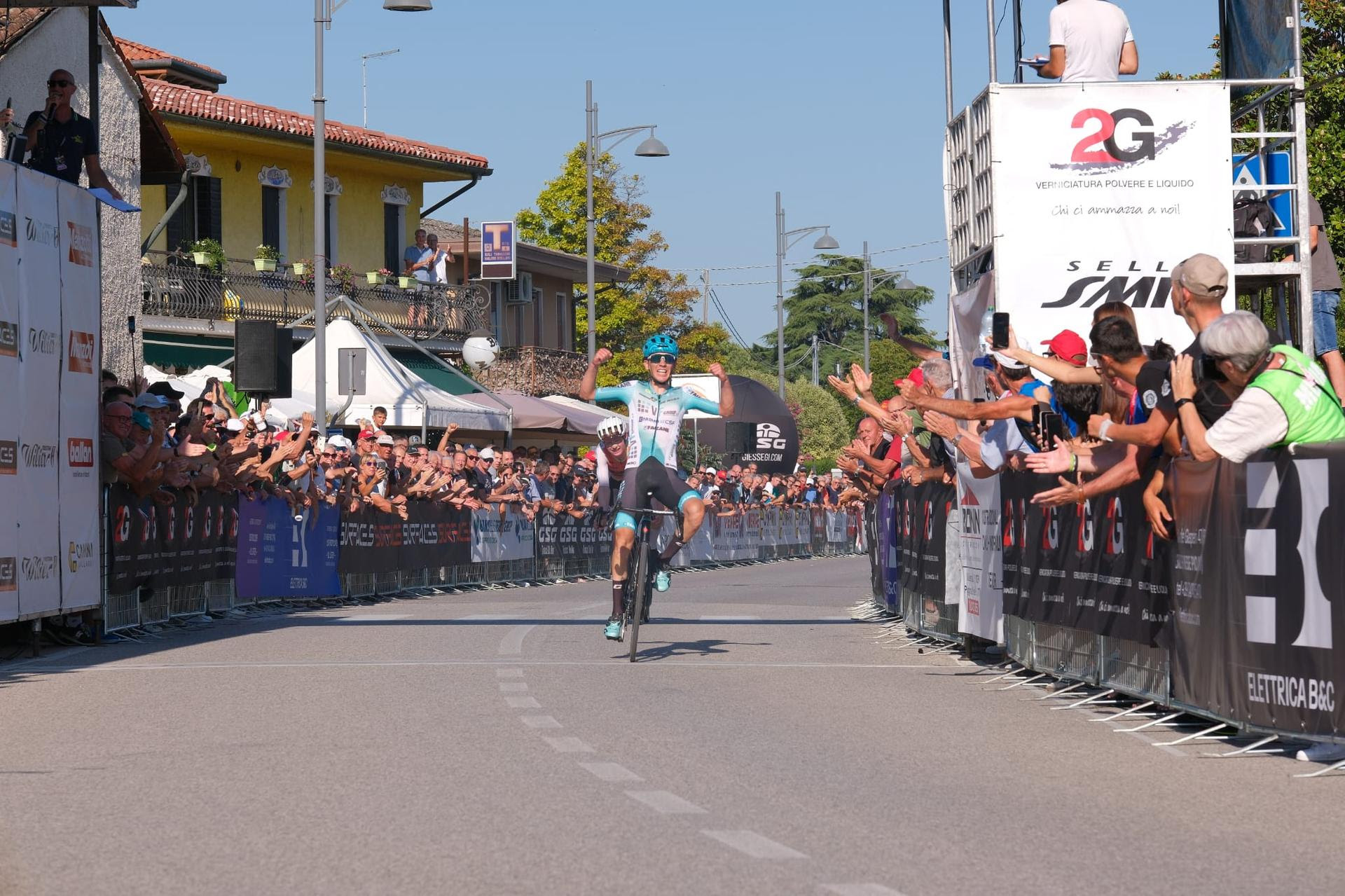 A proseguire nell’azione sono Putz, Dodd e Brough: alle loro spalle, complice il grande caldo, gli inseguitori faticano a recuperare terreno ma è proprio a questo punto che si accende la stella di Matteo Scalco. Il vicentino se ne va dal gruppo, recupera uno ad uno gli attaccanti della prima ora, si riporta in testa e rilancia l’azione, l’unico a tenergli la ruota è il britannico Dodd (Tirol): si forma così la coppia che giunge a Poggiana a giocarsi il tutto per tutto. Un finale senza storia, la voglia di Matteo Scalco di tornare al successo è troppa e nessuno può più fermarlo nemmeno il più generoso di giornata. Alle spalle dei primi due sono in cinque a giocarsi la medaglia di bronzo con Ludovico Mellano (XDS Astana) che va così a completare il podio.
