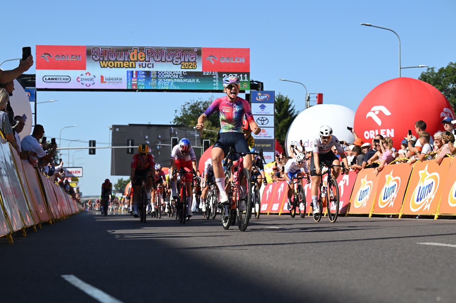 «Questo è il mio primo Tour de Pologne e sono davvero felice di correre in Polonia. Non ero mai stata qui prima, ma le persone sono così gentili, aperte e allegre che sembra quasi di essere a casa. C’erano tantissimi tifosi lungo le strade a fare il tifo, e l’atmosfera è stata fantastica. Questa è anche la mia prima vittoria su strada della stagione e la mia prima con la squadra, il che mi rende incredibilmente felice. Eravamo abbastanza sicuri che questa tappa sarebbe finita in una volata di gruppo, ma nel ciclismo non si sa mai. Abbiamo lavorato bene come squadra, controllato la corsa e tenuto a portata di mano la fuga, poi ho dato tutto nello sprint per raggiungere il mio obiettivo. Quando ho visto il cartello dei 100 metri, ho lanciato la mia volata, e tagliare il traguardo per prima è stata una sensazione incredibile. Oggi tutto è andato come speravo. Ora vedremo cosa potremo fare nelle prossime due tappe, ma per ora mi sto semplicemente godendo il momento», ha dichiarato Consonni.