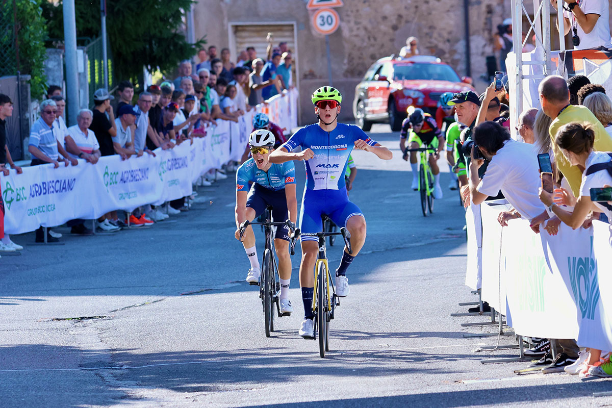 CALVAGESE DELLA RIVIERA (BS) – Con una volata imperiosa di gruppo ristretto, il trentino Fabio Segata della Us Montecorona ha festeggiato la sua prima vittoria stagionale regolando un drappello di 8 fuggitivi e conquistando la 10/a Medaglia d’Oro Alba Rosa, gara riservata alla categoria Juniores corsa oggi a Calvagese della Riviera, nel Bresciano (foto Photobicicailotto).