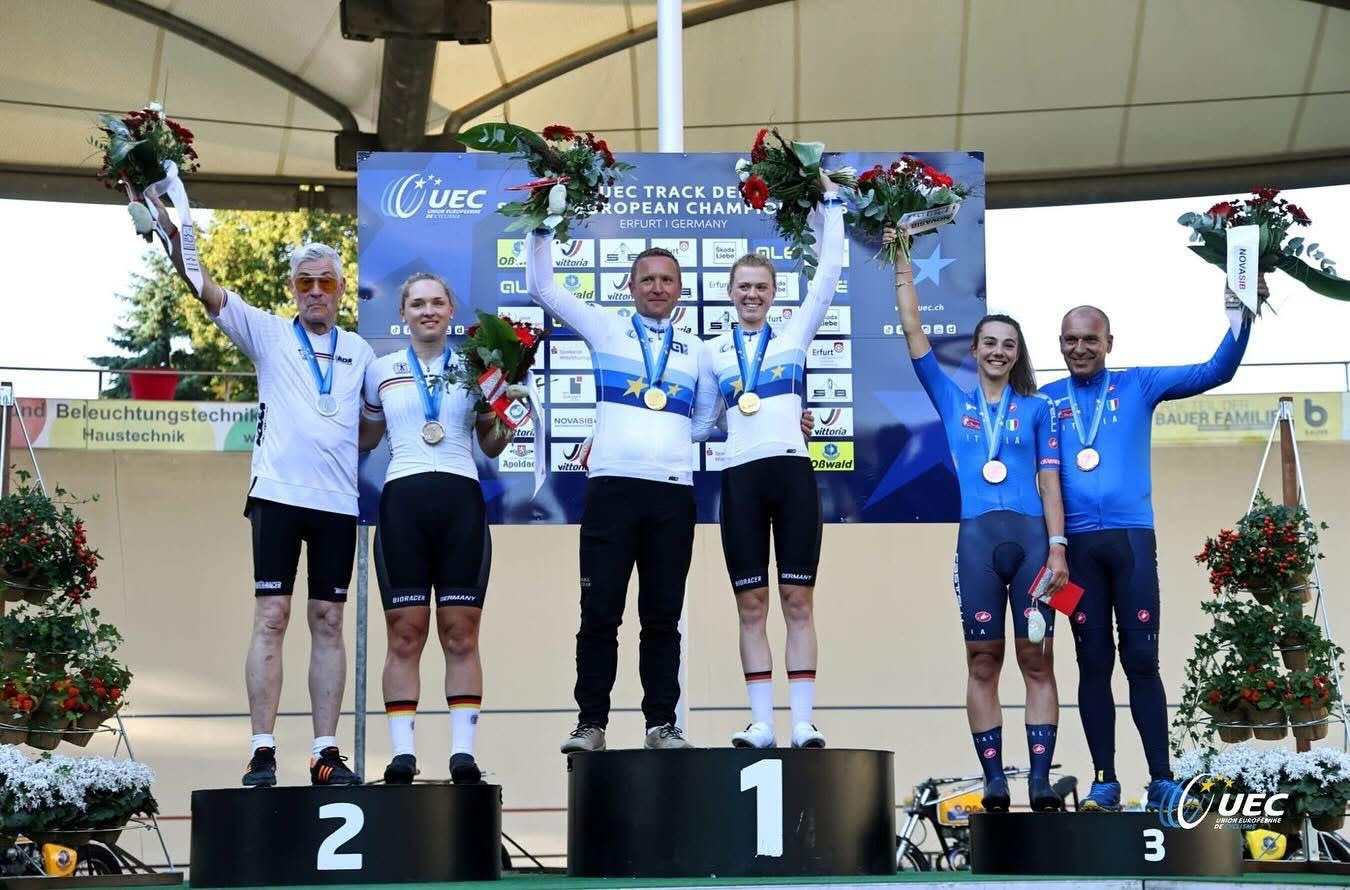 Nella giornata di ieri si sono svolti i Campionati Europei Derny e Stayer nella cittadina di Erfurt, in Germania. L’Italia è salita sul podio grazie al terzo posto di Arianna Fidanza, che è tornata in pista dopo diversi anni, con Christian Dagnoni come pilota. La gara è stata vinta dalla coppia tedesca Reibner-Mobus.