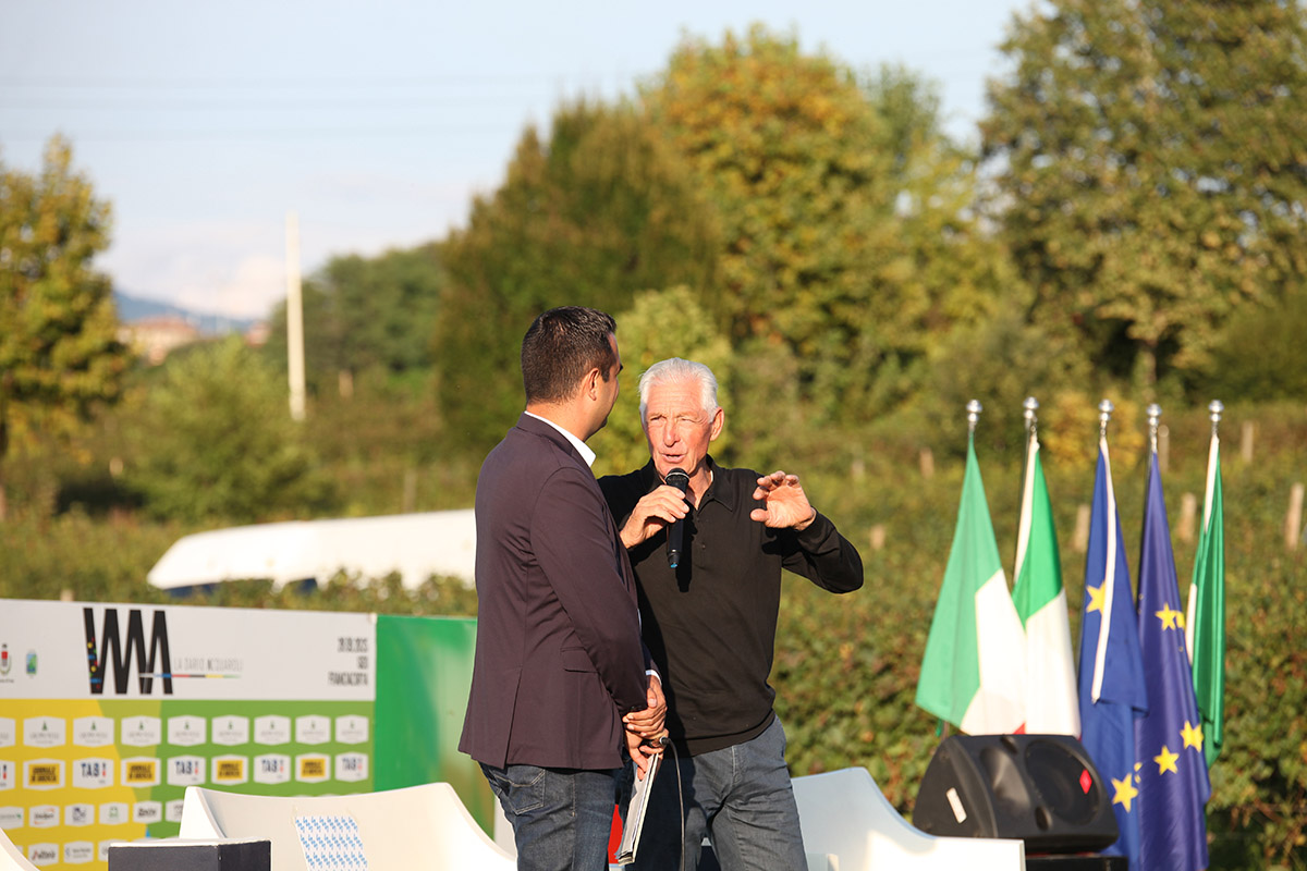 Il campione trentino ha speso parole di elogio per la manifestazione iseana e tra aneddoti, ricordi simpatici e riflessioni ha allietato con i suoi racconti la numerosa e attenta platea. La Dario Acquaroli come evento sportivo di riferimento, come mezzo di promozione del territorio e di uno stile di vita sano. Queste le riflessioni degli ospiti presenti. Tra le altre autorità intervenute segnaliamo Sara Vigani (padrona di casa – La Spensierata Franciacorta), Mariuccia Raccagni (Sindaco di Passirano comune che ospita la presentazione stampa), Paolo Franco (Assessore alla Casa e Housing sociale di Regione Lombardia), Giorgio Maione (Assessore all’Ambiente e Clima di Regione Lombardia), Zelica Corradin (Componente Commissione Ciclismo Paralimpico FCI), Michele Brescianini (Assessore del Comune di Iseo), Nino Nulli (in rappresentanza del Gruppo Nulli, sponsor dalla prima edizione nel 2001) e l’organizzatore Giuseppe Manenti (Gimasport).