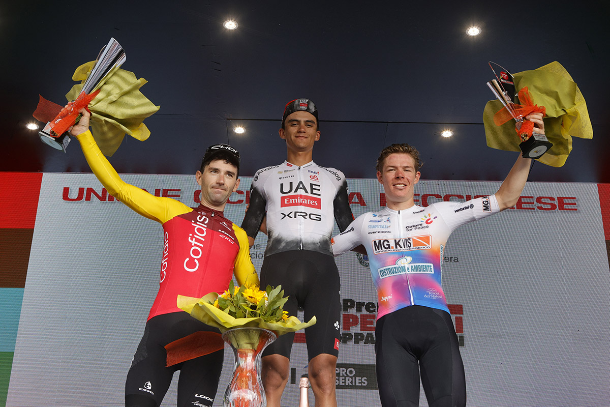 Isaac Del Toro è poi salito sul podio per ricevere il premio riservato al vincitore, la maglia di leader della Challenge Memorial Alfredo Martini e anche la maglia di miglior giovane della corsa.