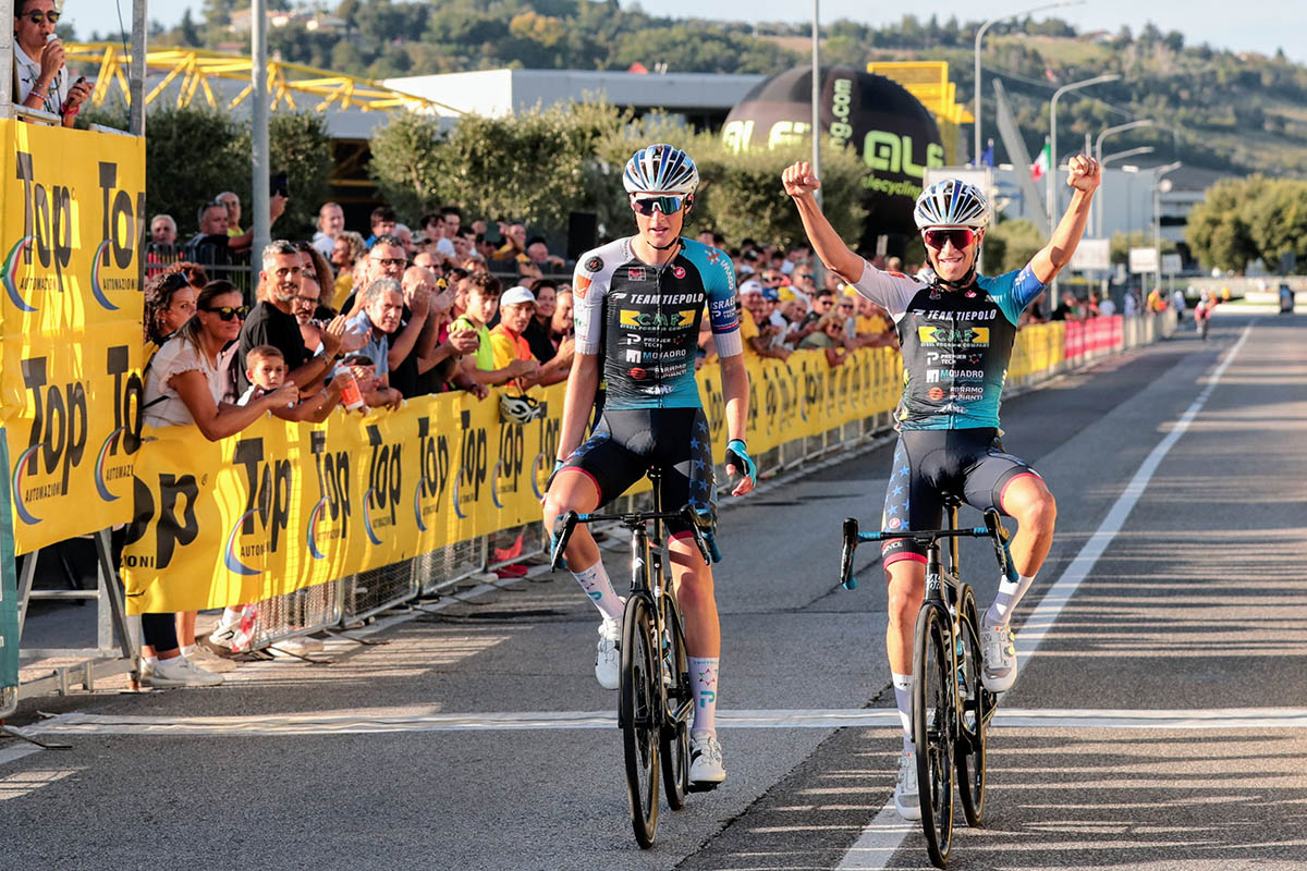 La collaborazione però è durata una sola tornata, e il tedesco Wrolich si è staccato solitario all’inseguimento del compagno. Avvisato dall’ammiraglia, Frigo ha rallentato, permettendo il ricongiungimento, e i due alfieri del Team Tiepolo Udine hanno affrontato fianco a fianco l’ultimo giro, presentandosi insieme sul traguardo davanti allo stabilimento Top Automazioni. Un arrivo in parata che ha consacrato la supremazia del sodalizio friulano, tra gli applausi del pubblico presente. Un arrivo in trionfo, mentre alle loro spalle arriva il plurivincitore di questa stagione Marco Zoco (GB Team Pool Cantù) a completare il podio 2025 della competizione Nazionale.