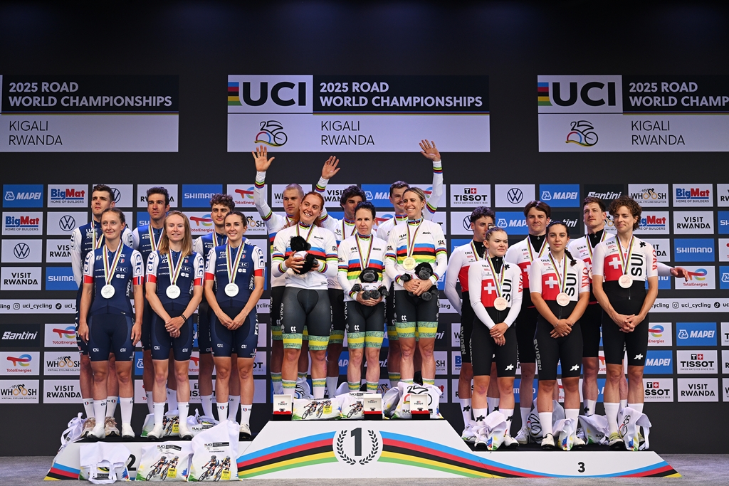 KIGALI (RUANDA) – A un anno di distanza, è di nuovo l’Australia a conquistare i Campionati del Mondo su strada UCI nella Mixed Relay Team Time Trial, la speciale staffetta mista 3 uomini/3 donne, disputata sul selettivo tracciato di 41,8 km a Kigali.