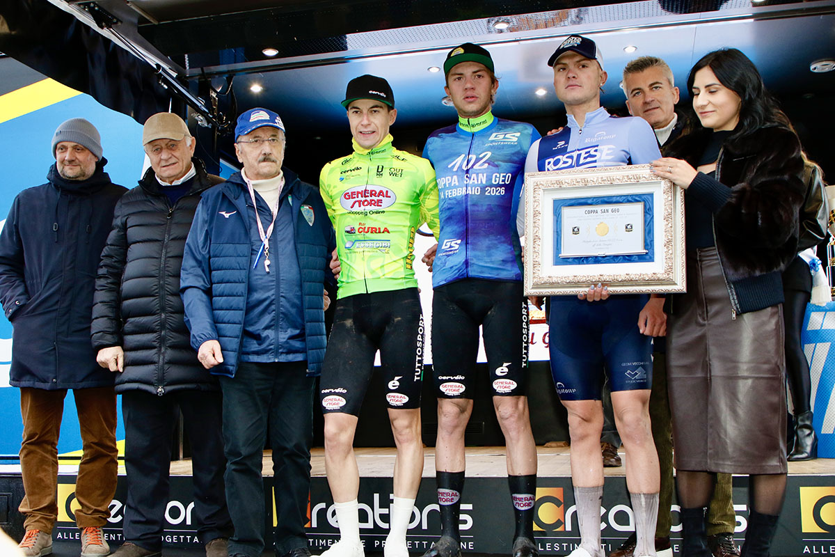 Vittoria per Nicolò Arrighetti della General Store Essegibi F.lli Curia che domina lo sprint della 102/a Coppa San Geo in una giornata dal clima simile ad una Classica del Nord. A completare il podio Giovanni Bortoluzzi, secondo e compagno di squadra del vincitore, e Gabriel Fede (Ciclistica Rostese) terzo.