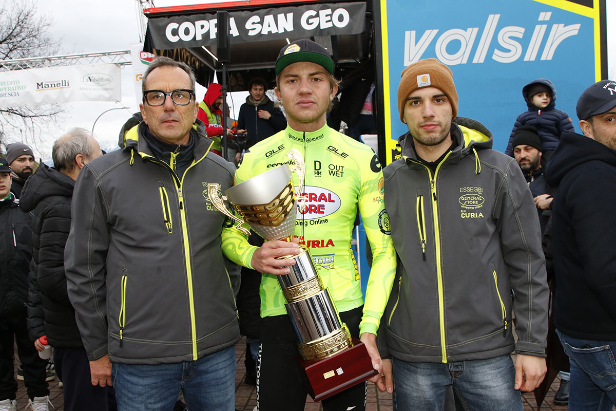 Negli ultimi 20 Km chilometri la General Store fa un grande lavoro per tenere alta l’andatura e non permettere altri scatti, e così allo sprint conclusivo Arrighetti vince con facilità la prestigiosa Coppa San Geo con Bortoluzzi, secondo, abile a firmale una grande doppietta per la General Store Essegibi F.lli Curia.
