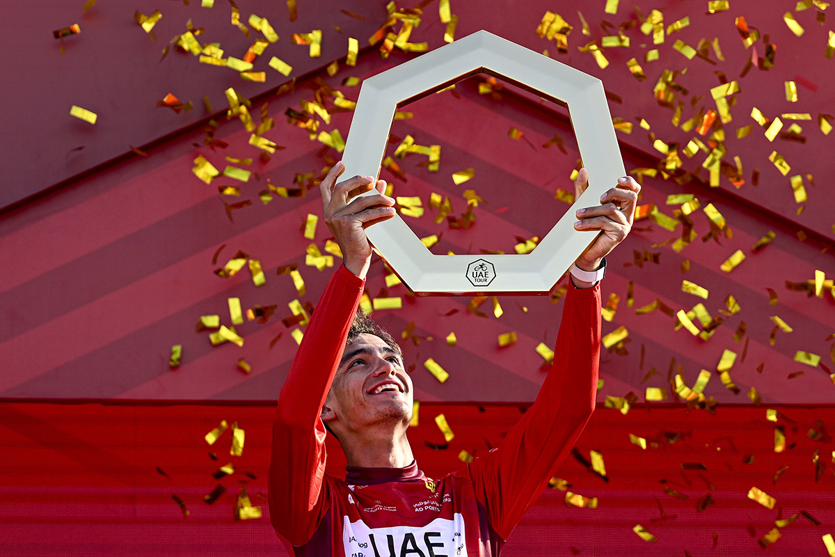Il giovane talento messicano della UAE Team Emirates XRG ha gestito con intelligenza e sangue freddo l’ultima tappa, la Abu Dhabi Ports Group Stage, difendendo senza rischi la Maglia Rossa e conquistando così la sua prima vittoria in una corsa a tappe WorldTour, nonché il successo nella gara di casa della sua squadra.
