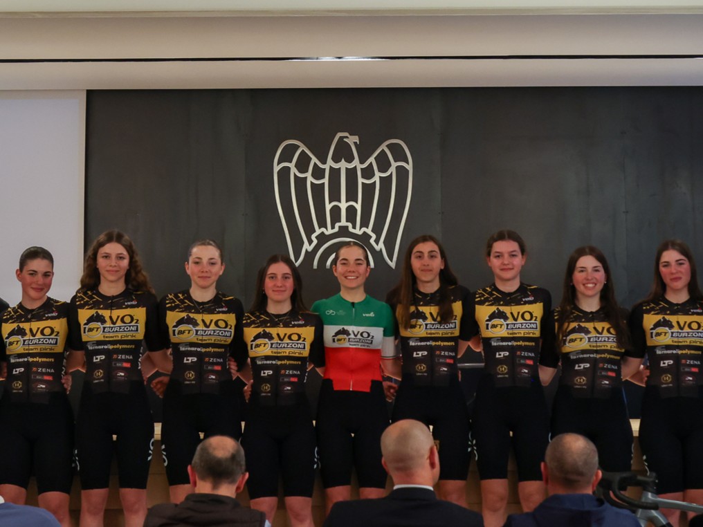 Un appuntamento ormai tradizionale per dare il la alla nuova stagione, quest’anno aperta in anticipo con la partecipazione a una gara internazionale in Olanda dove è arrivato il primo podio. Sabato scorso nella Sala Convegni di Confindustria Piacenza si è alzato il sipario sul 2026 della Bft Burzoni VO2 Team Pink, formazione piacentina Donne Juniores pronta alla sua undicsima annata in sella. La presentazione ufficiale arrivava alla vigilia della prima gara italiana di domenica a Nonantola, dove la trentina classe 2008 Agata Campana (sul podio in Olanda) ha conquistato l’ottavo posto in volata.