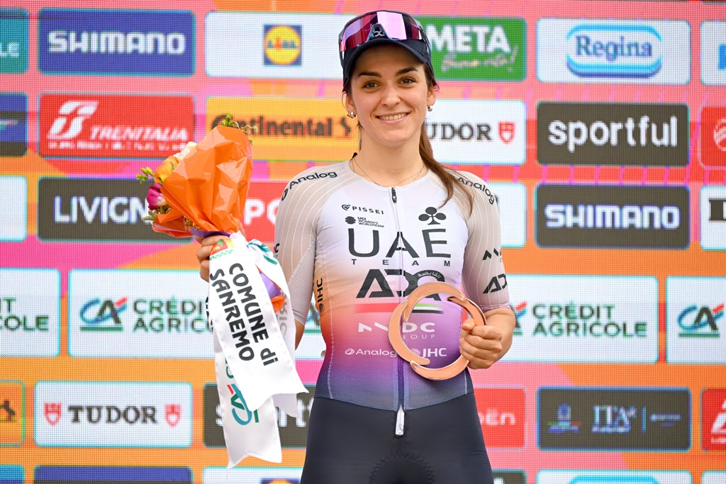 Prestigioso podio per Eleonora Gasparrini alla Milano-Sanremo Women, una delle Classiche Monumento più iconiche del calendario, e un’altra solida prova corale per UAE Team ADQ, che piazza anche Dominika Włodarczyk in quinta posizione.