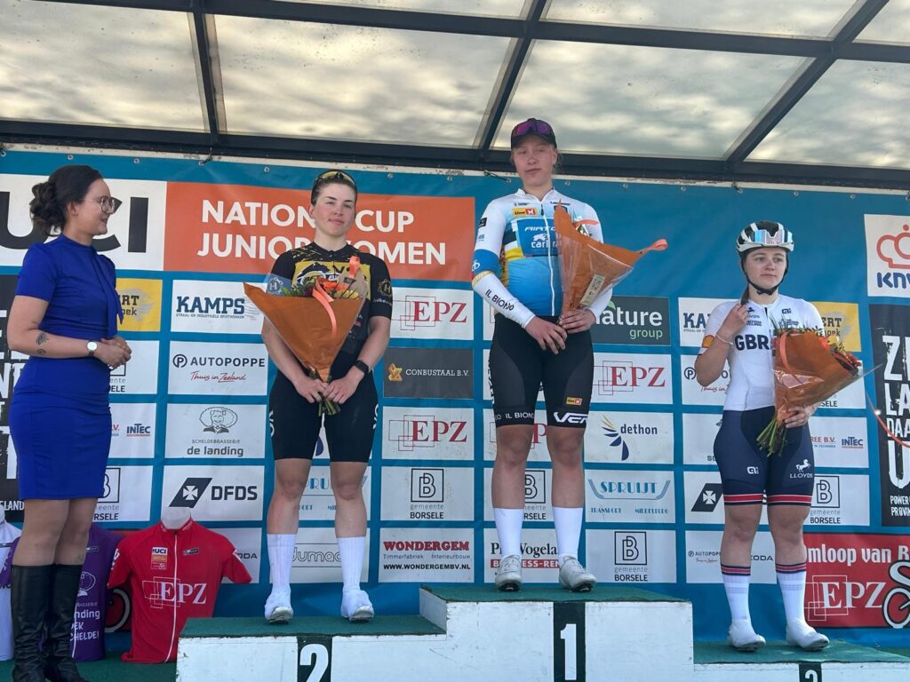 Agata Campana (Bft Burzoni VO2 Team Pink) sul podio all’EPZ Omloop Van Borsele in Olanda