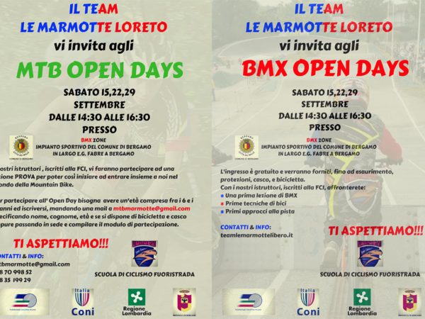 Il Team Le Marmotte Loreto offre un’occasione imperdibile con gli ormai tradizionali Open Day MTB e BMX che saranno ospitati dalla BMXZone di Bergamo.