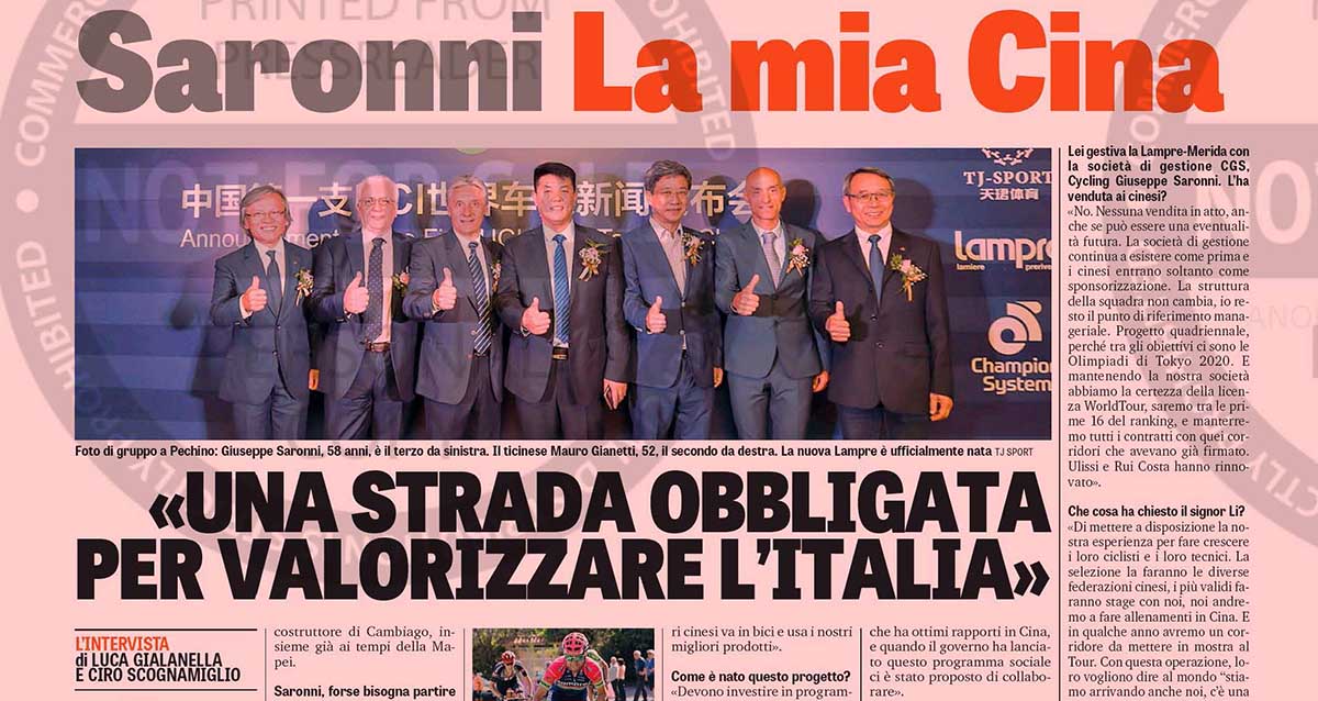 Parola a Saronni: La Lampre, i cinesi e Colnago per valorizzare il ciclismo in Cina, ma anche in Italia