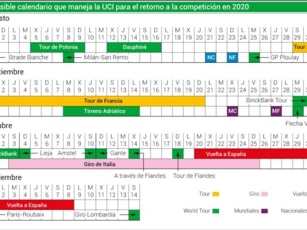 Dopo gli annullamenti e i rinvii dovuti all'emergenza Coronavirus, il possibile nuovo calendario gare dell'UCI WorldTour 2020 è svelato da AS.