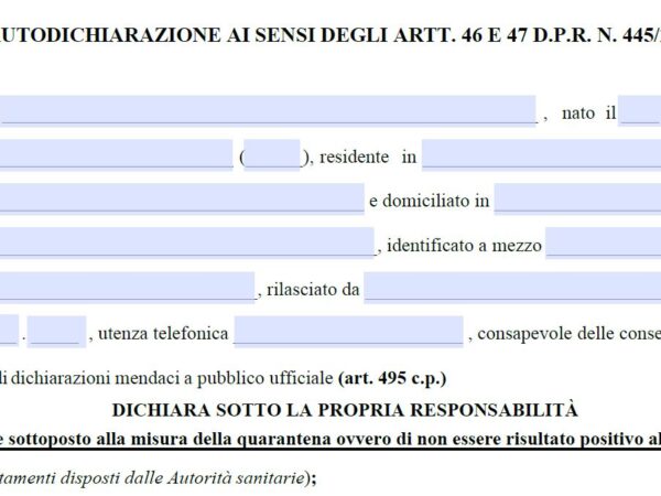 Coronavirus, online il nuovo modulo per l’autocertificazione