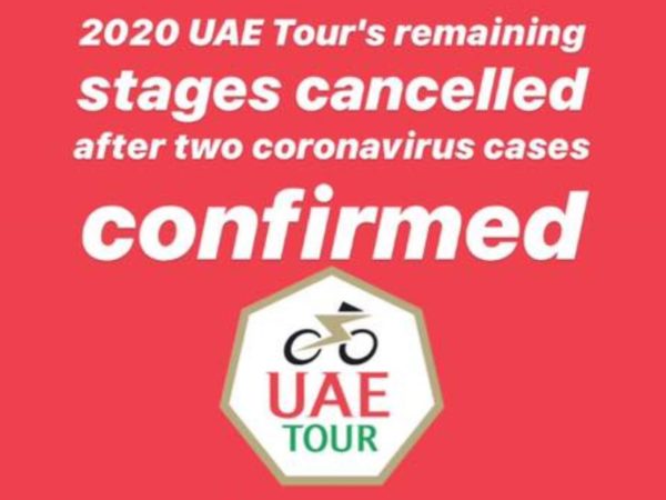 Il Comitato organizzatore ha cancellato le ultime due tappe dell'UAE Tour 2020 dopo che due casi positivi al nuovo coronavirus.
