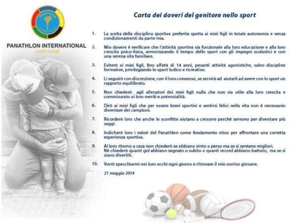 Diverse società sportive ed enti della provincia di Bergamo hanno sottoscritto la Carta dei Doveri dei Genitori nello Sport promossa dal Panathlon.