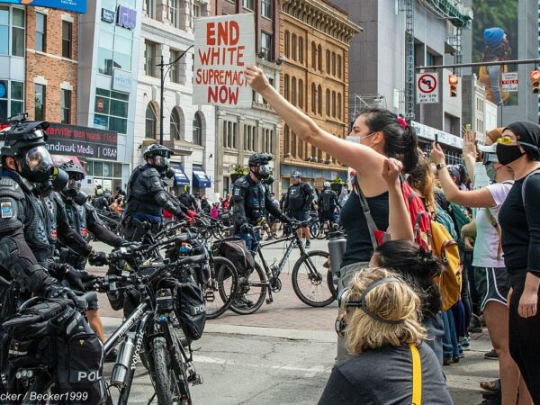 La settimana scorsa è diventato virale il video di un ciclista che aggrediva una bambina che stava appendendo dei manifesti sulla morte di George Floyd.