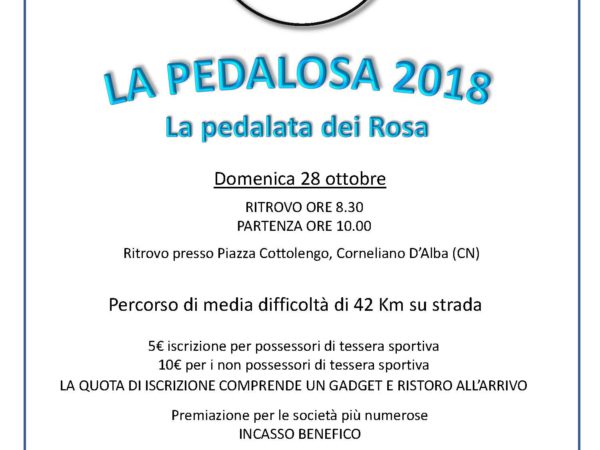 Domenica 28 ottobre a Cornegliano d'Alba il Diego Rosa Fan Club organizza La Pedalosa 2018, la pedalata dei Rosa. Tutti i dettagli.