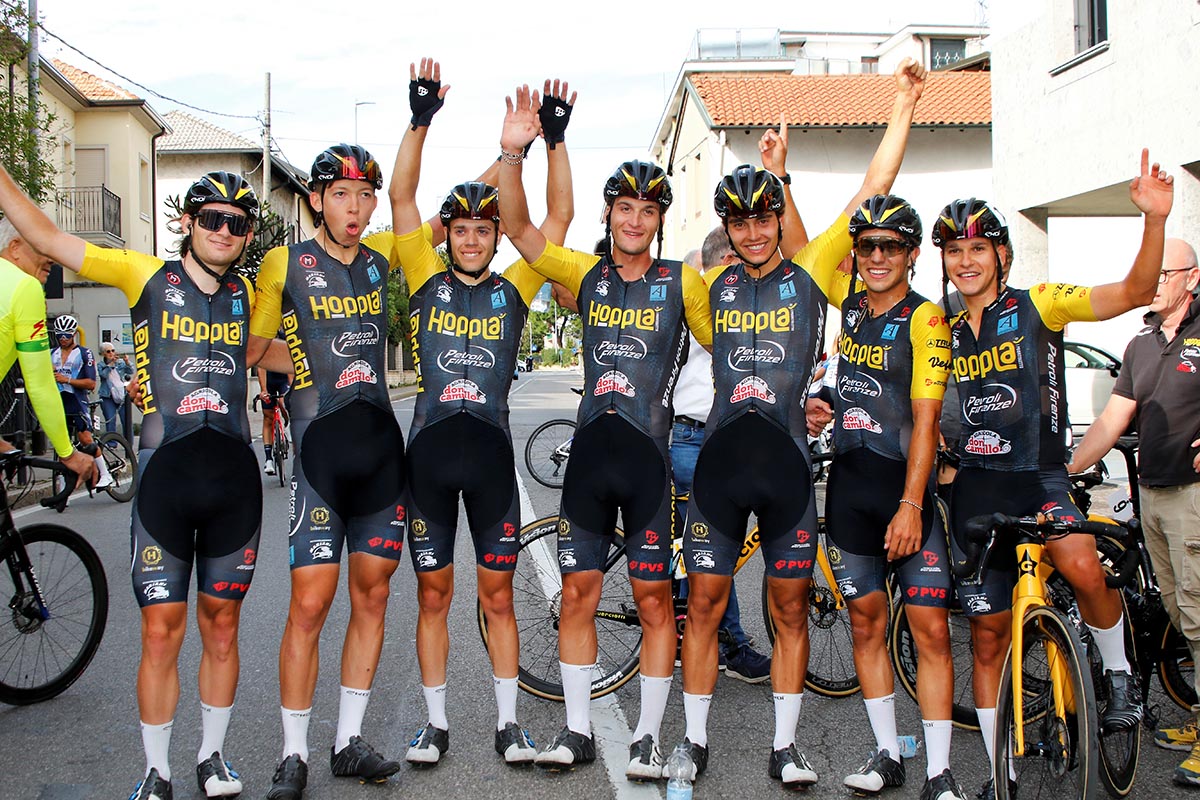 Poi vanno in avanscoperta Matteo Ambrosini (Colpack Ballan) e Kyrylo Tsarenko (Hopplà-Petroli Firenze-Don Camillo). Su di loro rientrano poi a più riprese altri corridori e al suono della campana si forma al comando della corsa un gruppo di 19 corridori: Mario Meris (Team Colpack-Ballan), Alessandro Baroni, Lorenzo Montanari (Hopplà-Petroli Firenze-Don Camillo), Gianluca Cordioli (Sissio Team), Christian Rocchetta, Matteo Baseggio (Uc Trevigiani Energiapura Marchiol), Ioannis Davarias (Overall Tre Colli), Lorenzo Farinati, Simone Buda (Solme – Olmo), Marco Rancilio (Namedsport – Uptivo), Roberto Bottaro (Vc Mendrisio), Cristian Spagni, Jacopo Lovison (Trentino Cycling Team), Simone Carrò (Aries Cycling), Alessio Bonora (Sc Valle Seriana Cene), Lino Colosio (Arvedi Cycling).