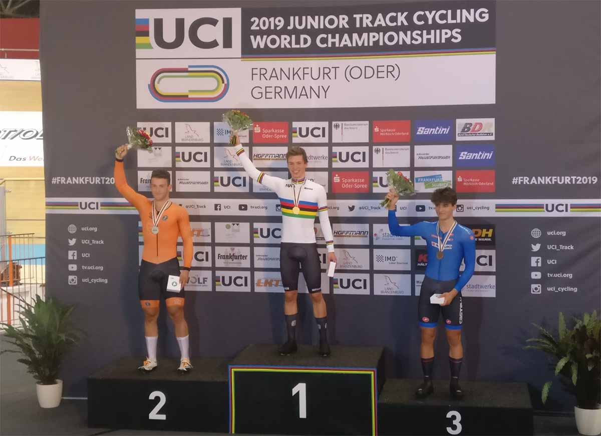 FRANCOFORTE (GERMANIA) – L’ultima giornata di gare dei Campionati Mondiali Pista Juniores di Francoforte, regala all’Italia un’altra bellissima medaglia. Succede nel Km da fermo con Matteo Bianchi che in 1’02”068 conquista uno splendido bronzo. L’altoatesino classe 2001, che in questa rassegna iridata abbiamo visto piazzarsi nel keirin e impegnarsi al torneo Sprint, è un giovane di talento e questo bronzo mondiale conferma il suo spessore sommandosi al bronzo di specialità vinto ai recenti europei.