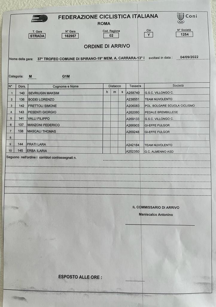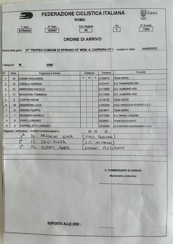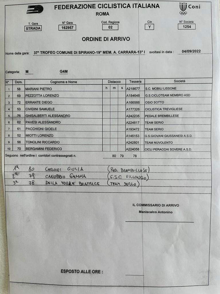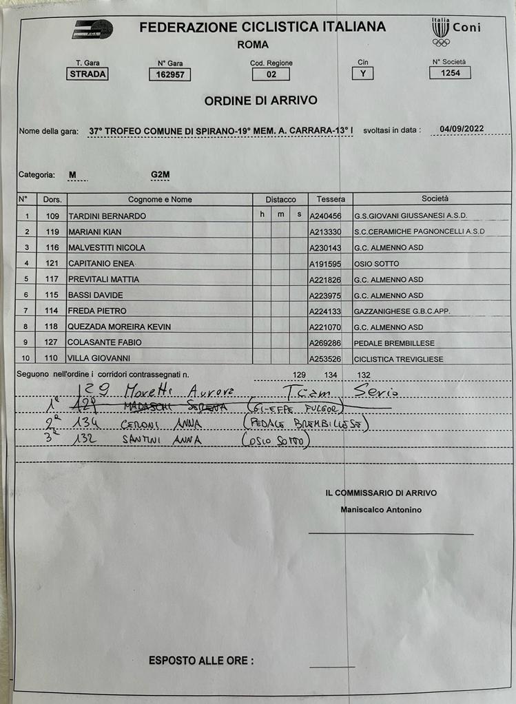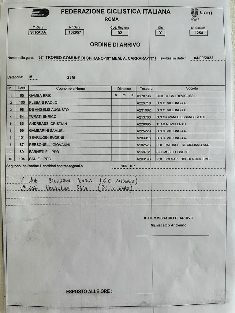 37° Trofeo Comune Di Spirano – 19° Memorial Antonio Carrara – 13° Memorial Piero Carminati