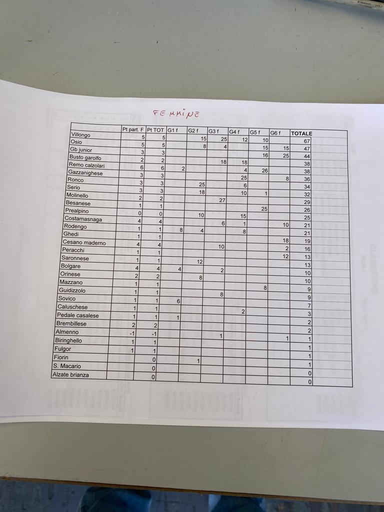 La classifica definitiva di società per il Campionato Regionale è stata corretta in quanto c’era un errore nel calcolo. Questa è quella definitiva: